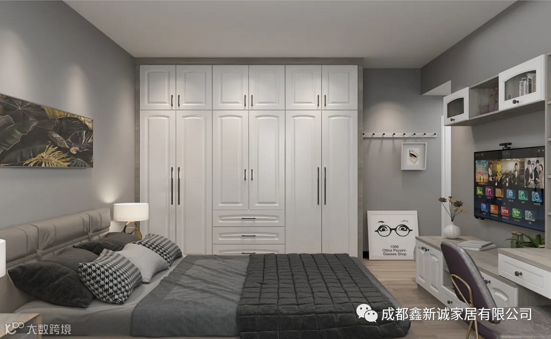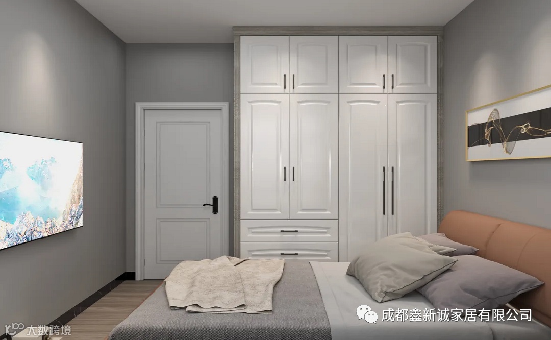 在定制上,色调与材质在空间内交舞,围合出简致且具质感的墙柜系统,在细节上优化了柜门,折叠插入的设计,打破单一的视觉感受,带来更具趣味的空间体验。