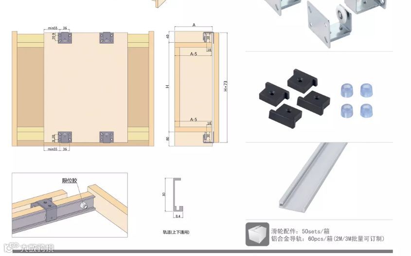 鑫诚达五金趟门轮系致力于设计、生产和销售各种家具移门/折叠移门/壁柜移门五金配件。我们坚持与时俱进,把新颖的生活理念导进产品的设计和工艺。我司趟门轮系列不仅技术新、品种新,而且理念文化新,积极倡导并努力实践趟门轮现代化工艺。方便实用,是我们品牌的内涵,也是我们的使命,更是我们对社会,对消费者的承诺。以下是我司趟门轮五金系列详解以及安装图示,供广大采购商参考。