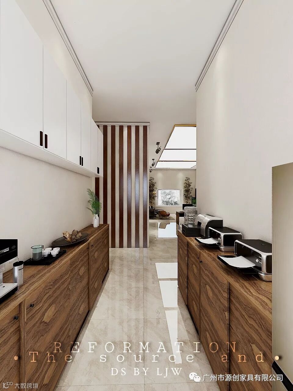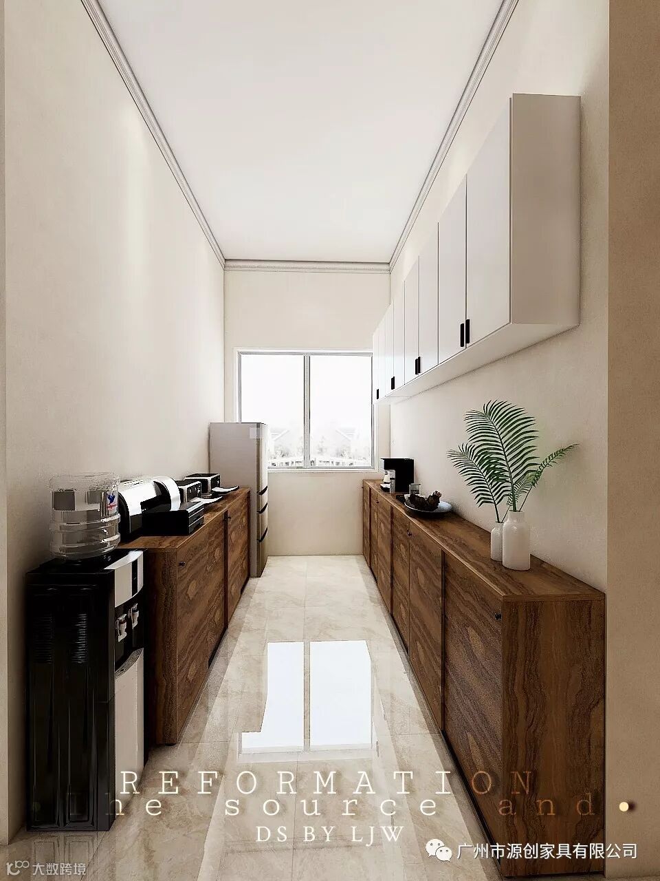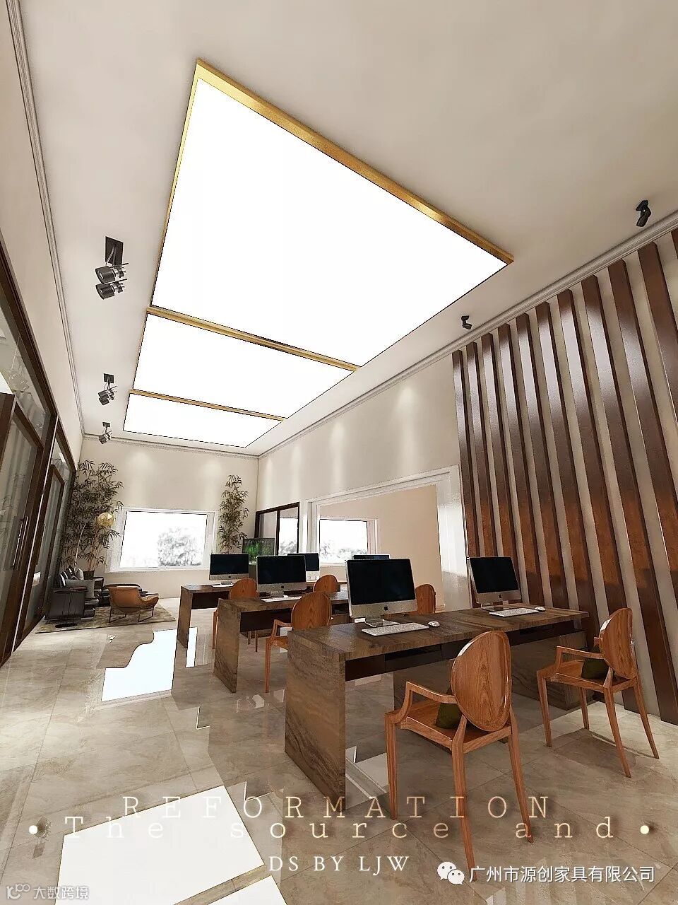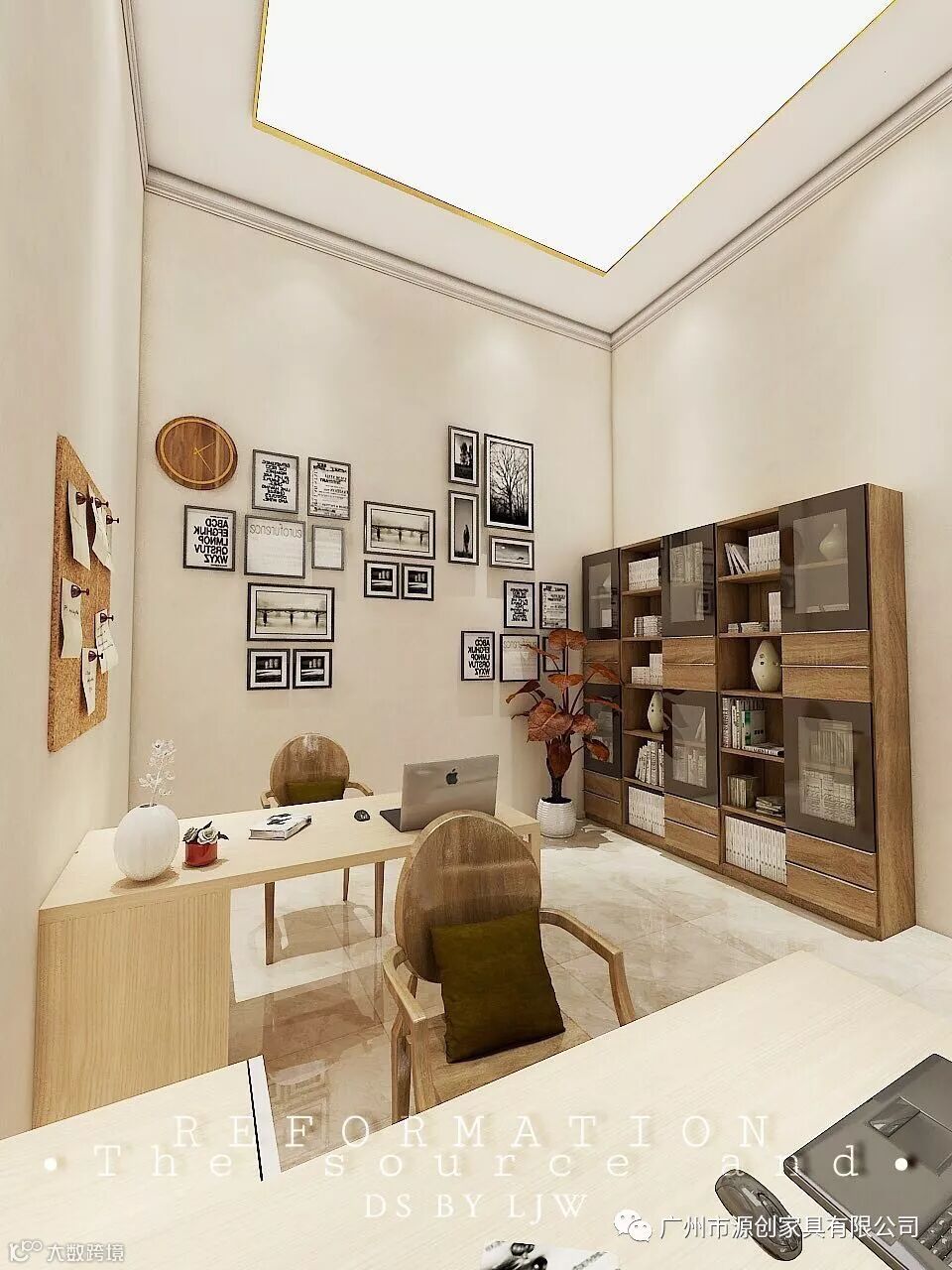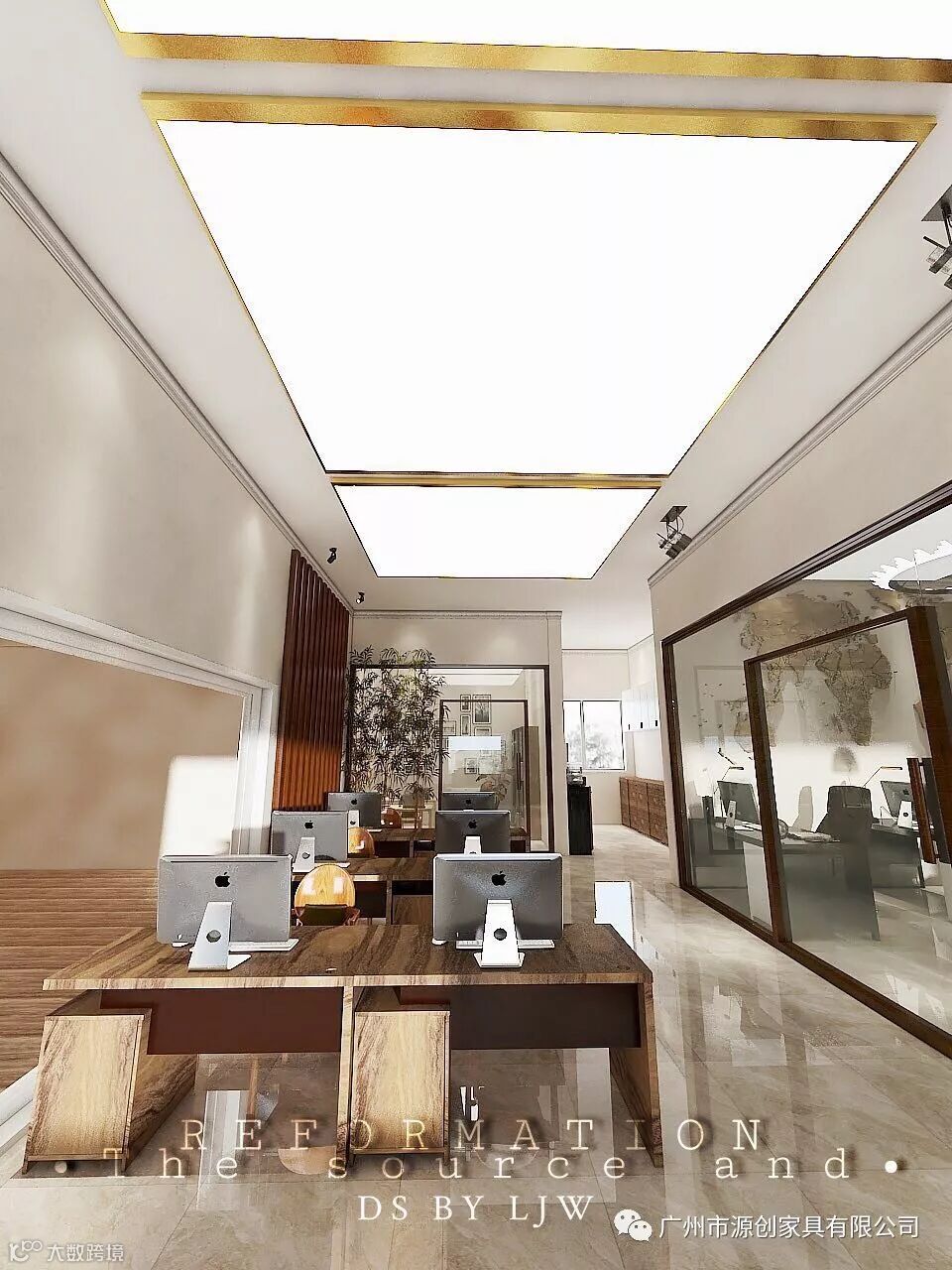 辦公區家具采用自然原木,顔色簡潔明了,造型簡單,木紋清晰。
