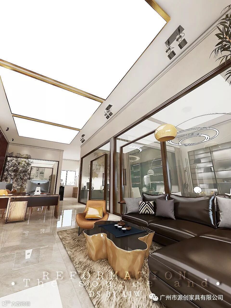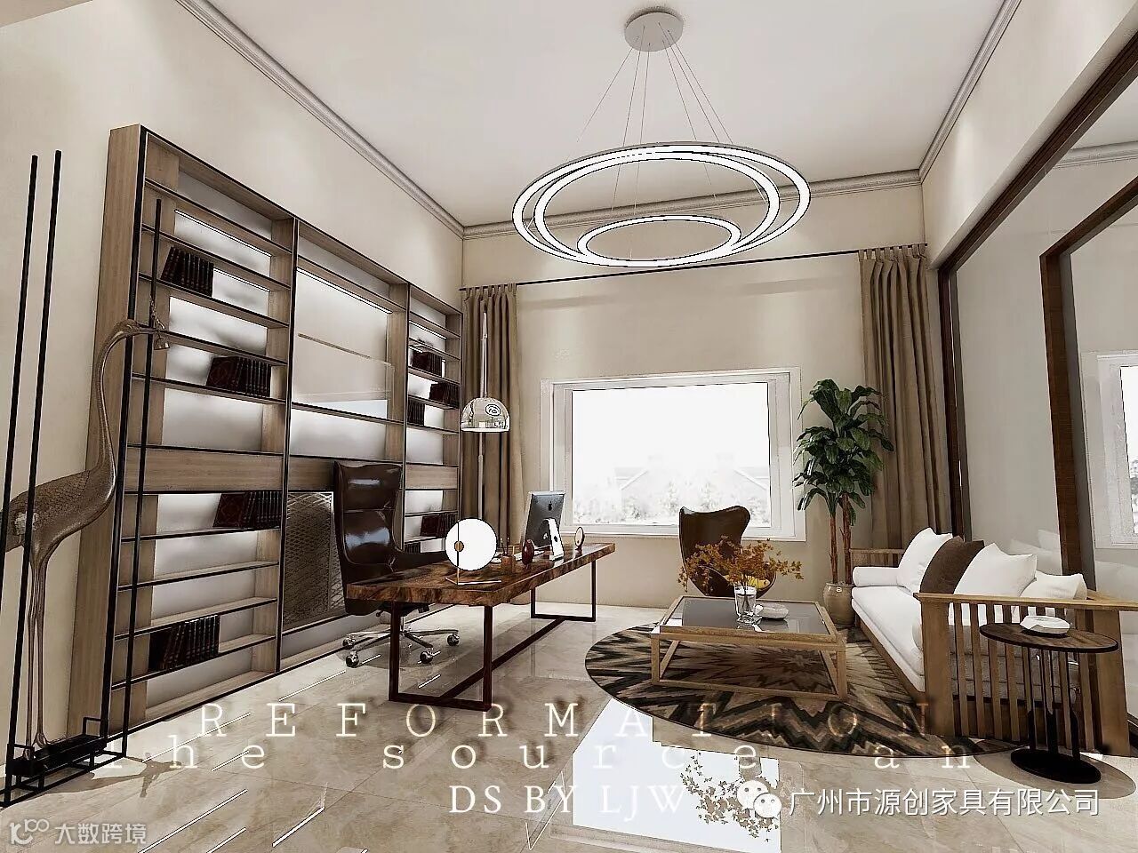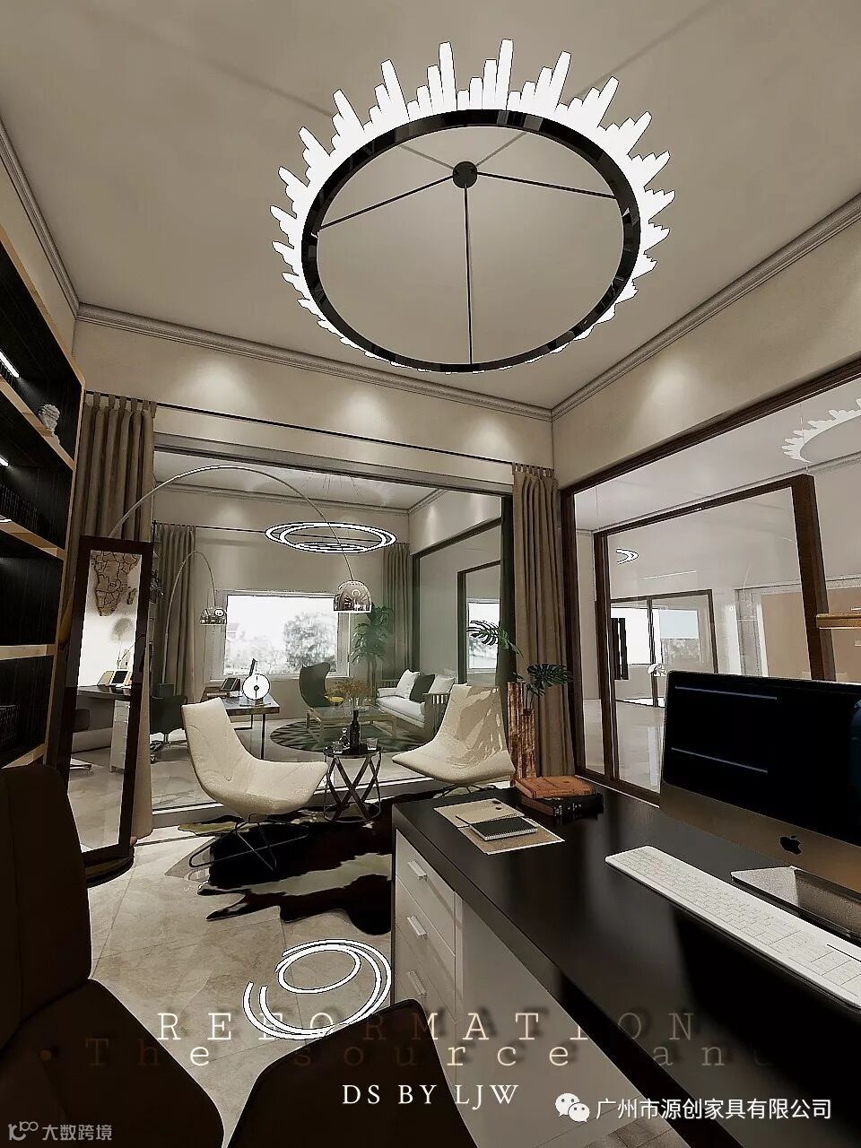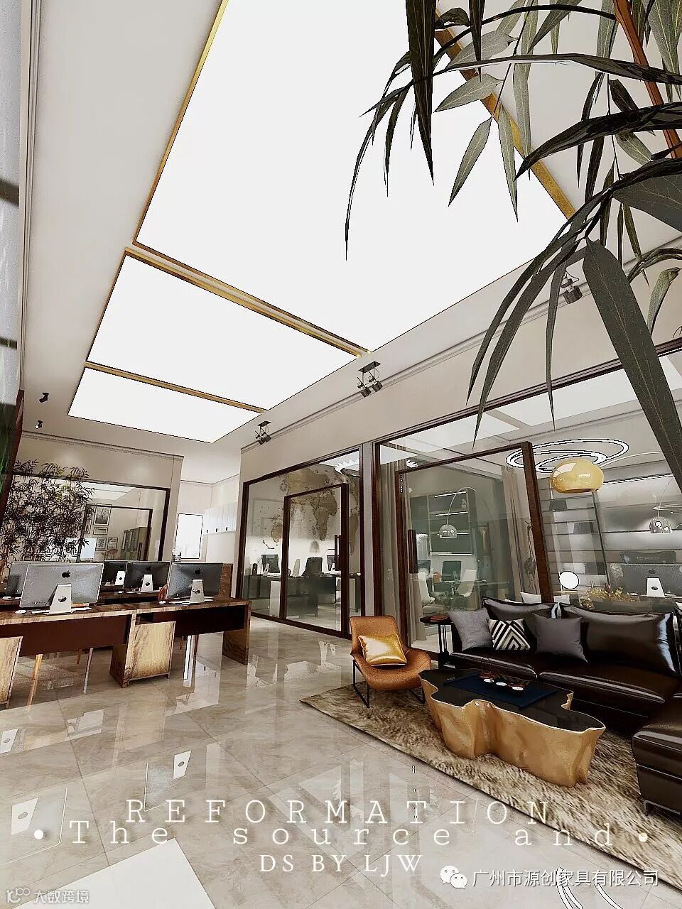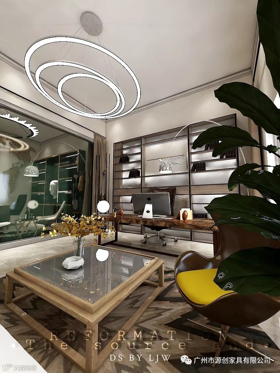 辦公區家具采用自然原木,顔色簡潔明了,造型簡單,木紋清晰。