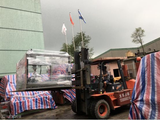 不巧的是,这天东莞下起了大雨,但洲通的工作人员还是冒雨为客户装货上车,一天内将三个货柜成功装完。后续也为客户上门进行安装和调试。