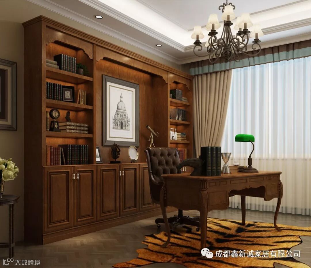 复古风格首先给人的感觉就是典雅、端庄。而在这样的的环境中看书、工作,在设计一体式书柜,它能彰显出主人的内涵和文化气质。