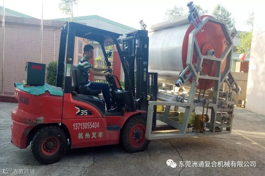 (洲通鞋材复合机装车完毕,准备发车)