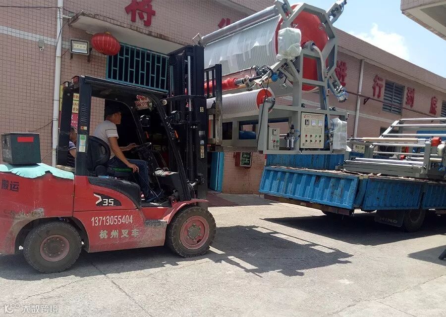 2018年5月21日,洲通机械安排为东莞客户订购的PVC装饰材料复合机装车出货。