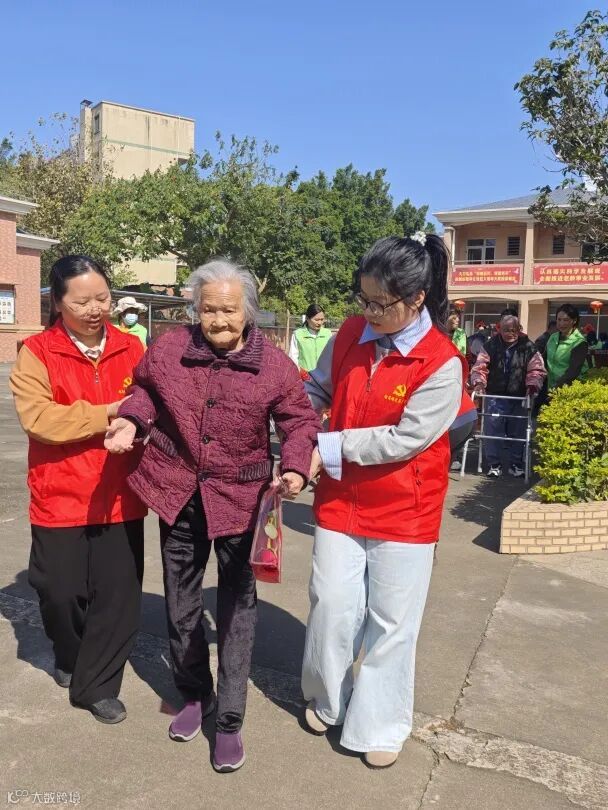 活动现场,一场精心筹备的文艺演出拉开了慰问的序幕。欢快的舞姿、真挚的表演,为老人们带去了轻松愉悦的心情。演出间隙,志愿者们为长者们分发水果、耐心聊天,用最朴素却最真诚的方式陪伴他们。对于行动不便的长辈,大家更是细心搀扶,稳步护送回房。