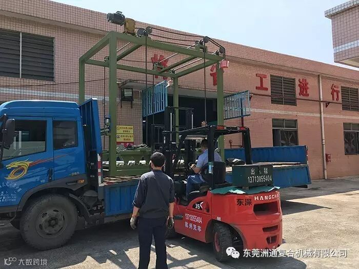 2017年4月28日,广州客户订购的无张力高速省工布料复合机顺利装车出货。