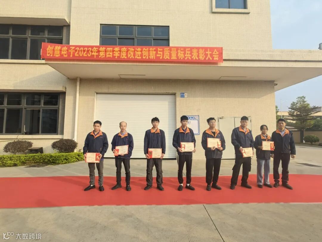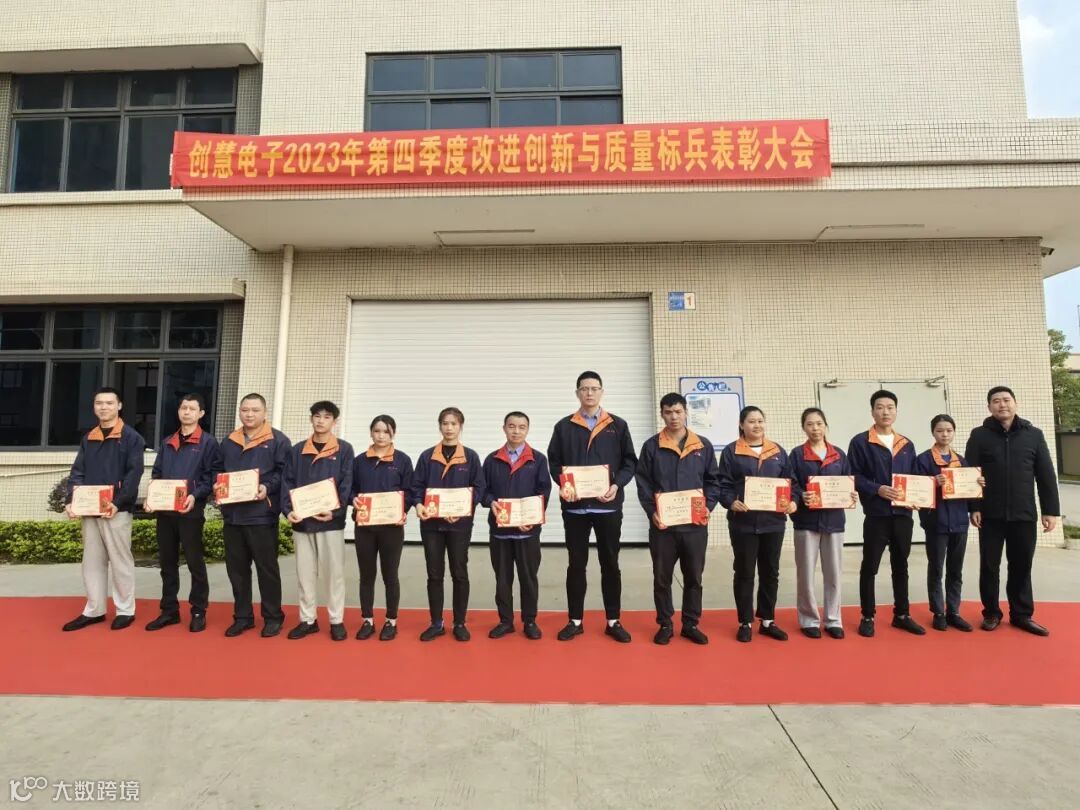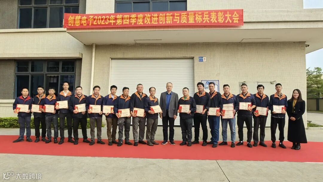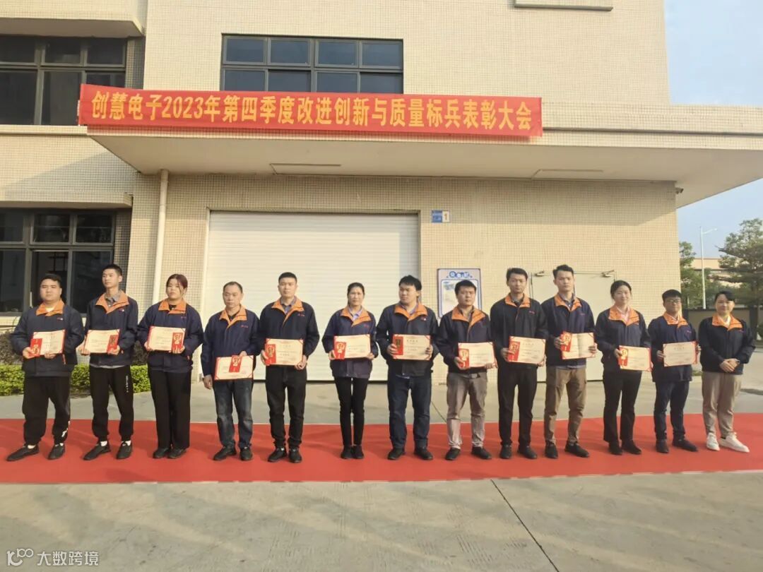 2024年1月9日,东莞市创慧电子有限公司成功举办了第四季度改进创新与质量标兵表彰大会,旨在表彰在改进创新和质量方面有突出表现的员工在大会上,对优秀员工的努力和贡献给予了高度评价,并颁发了荣誉证书和奖金以表彰他们的卓越表现