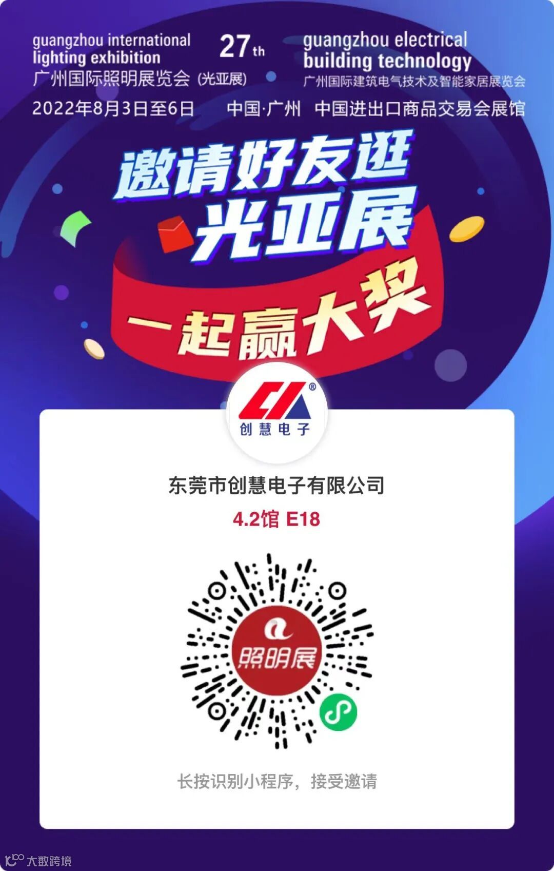 2022年8月3日-6日,创慧电子携18年高端铝电解电容器亮相第27届广州国际照明展览会!