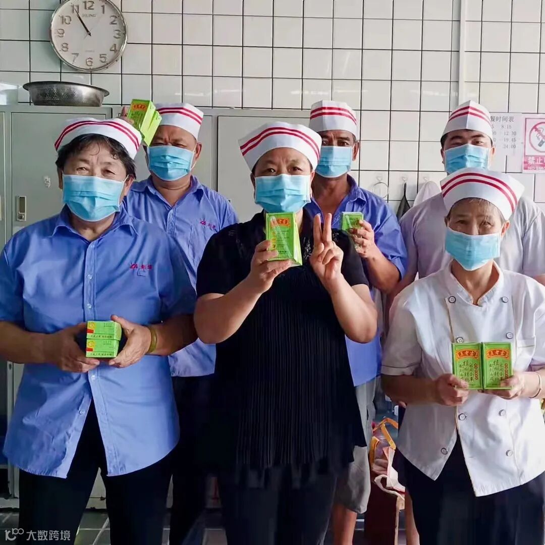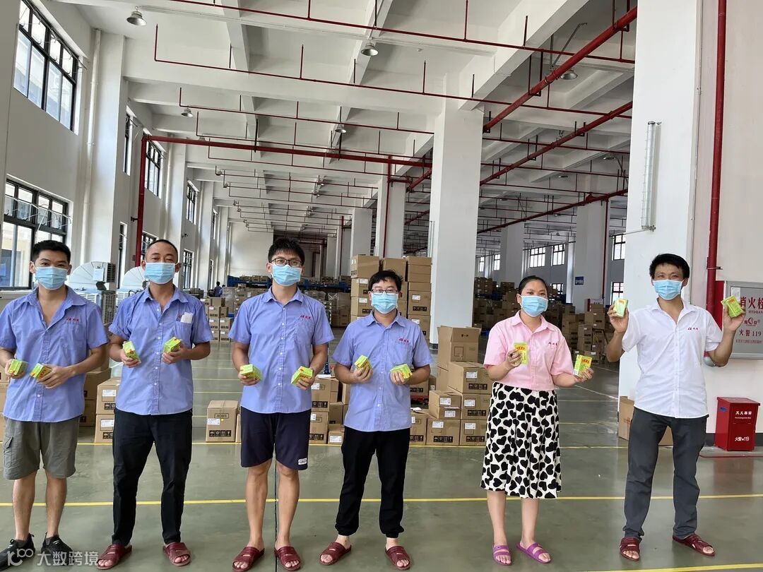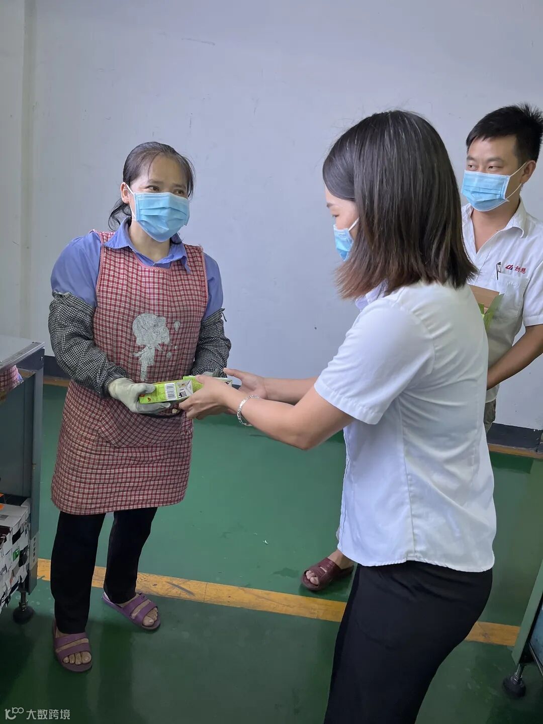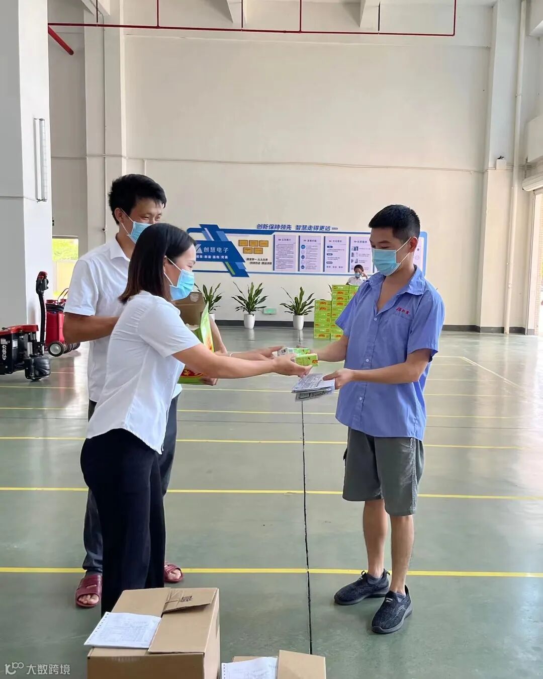 创慧张姐和管理人员一起为一线员工分发凉茶