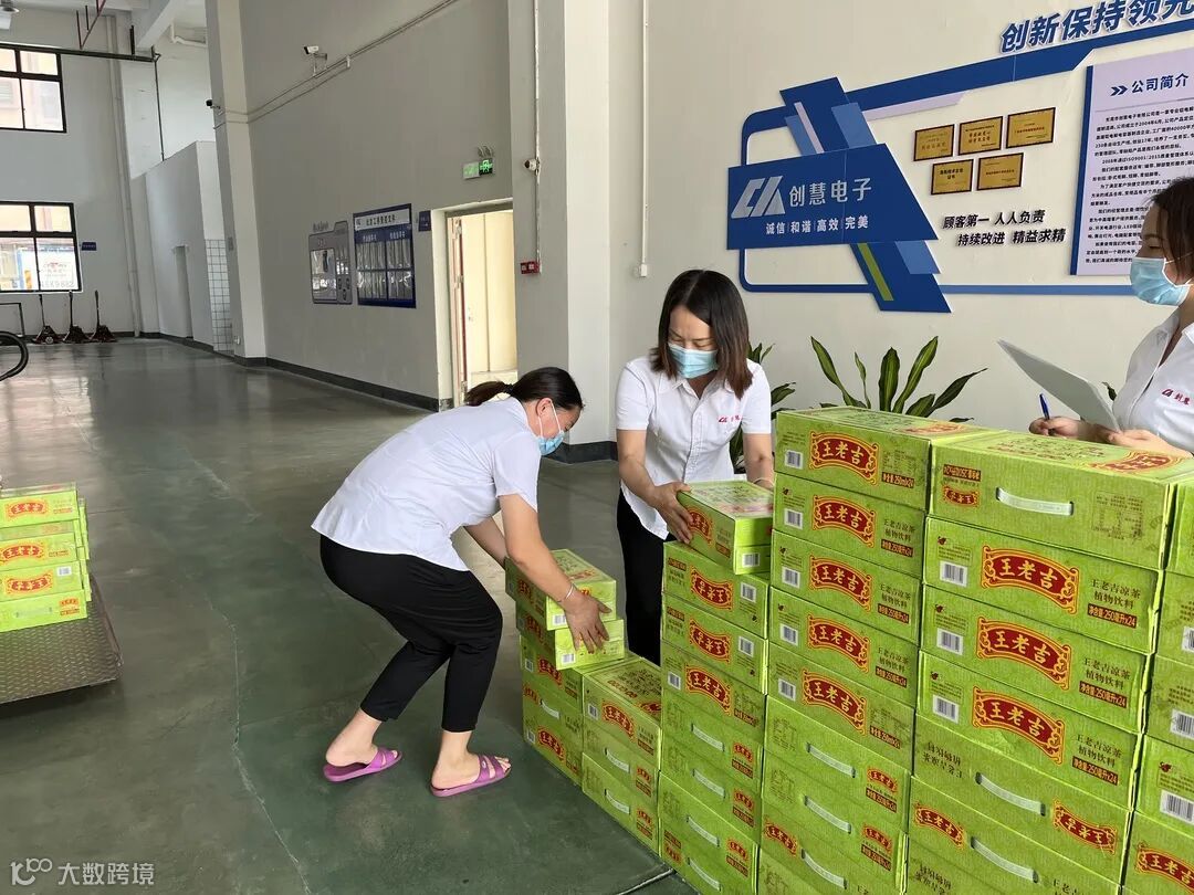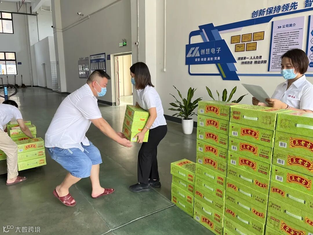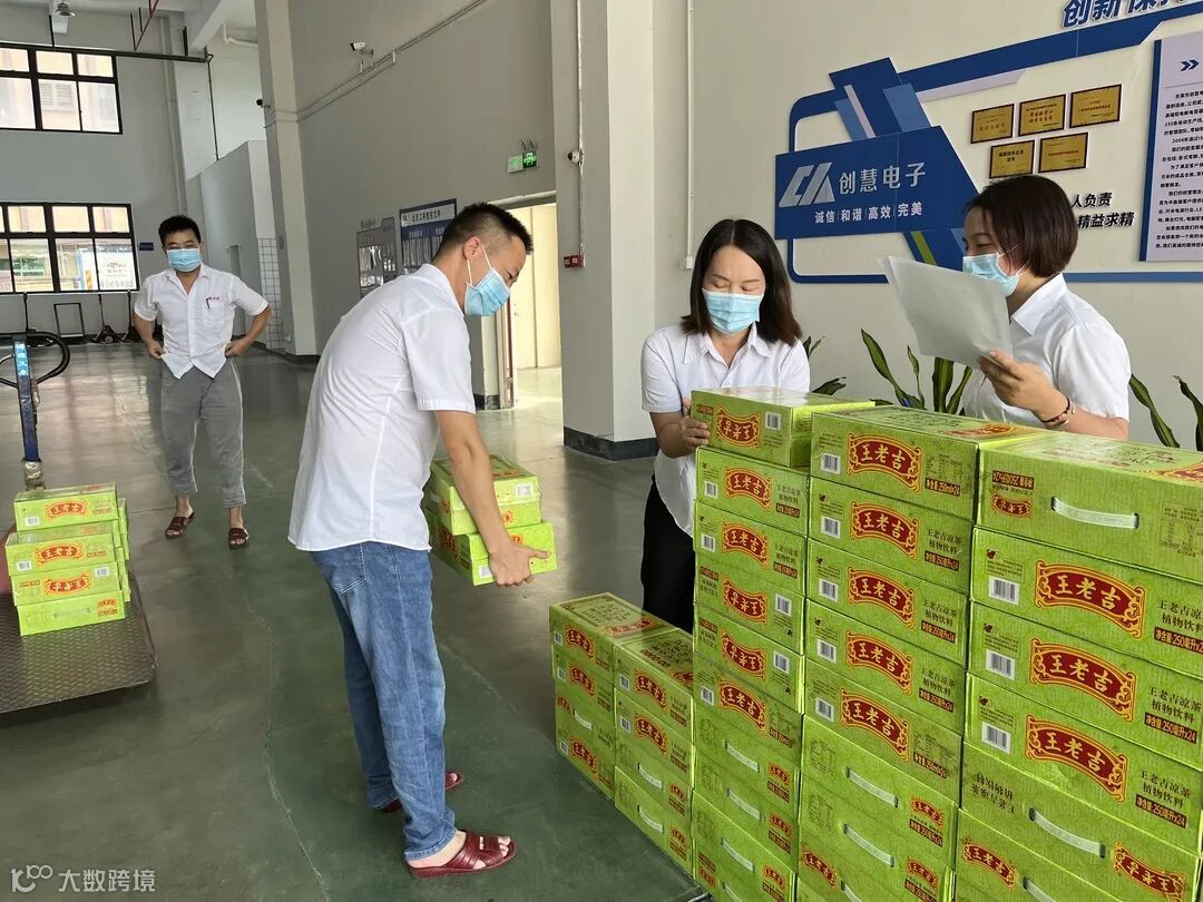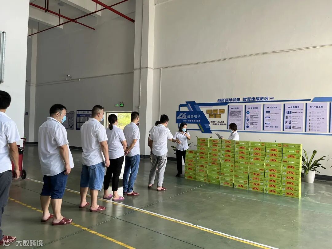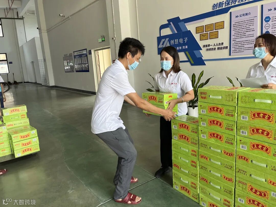 创慧张姐和管理人员一起为一线员工分发凉茶