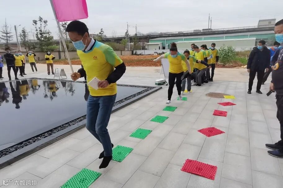 4、负责移动纸板的队员需考虑到队员的弹跳能力,进行适当距离移动,一旦负责跳青蛙的队员落地在纸板范围外,需回到起点,重新开始;