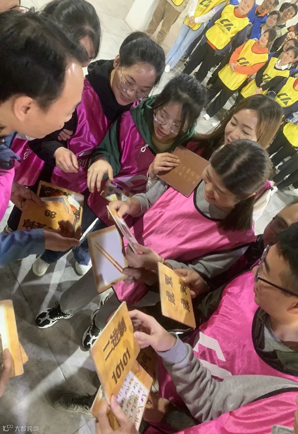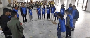 上午,抵达室内拓展基地,第一步便是组建“小团体”。
