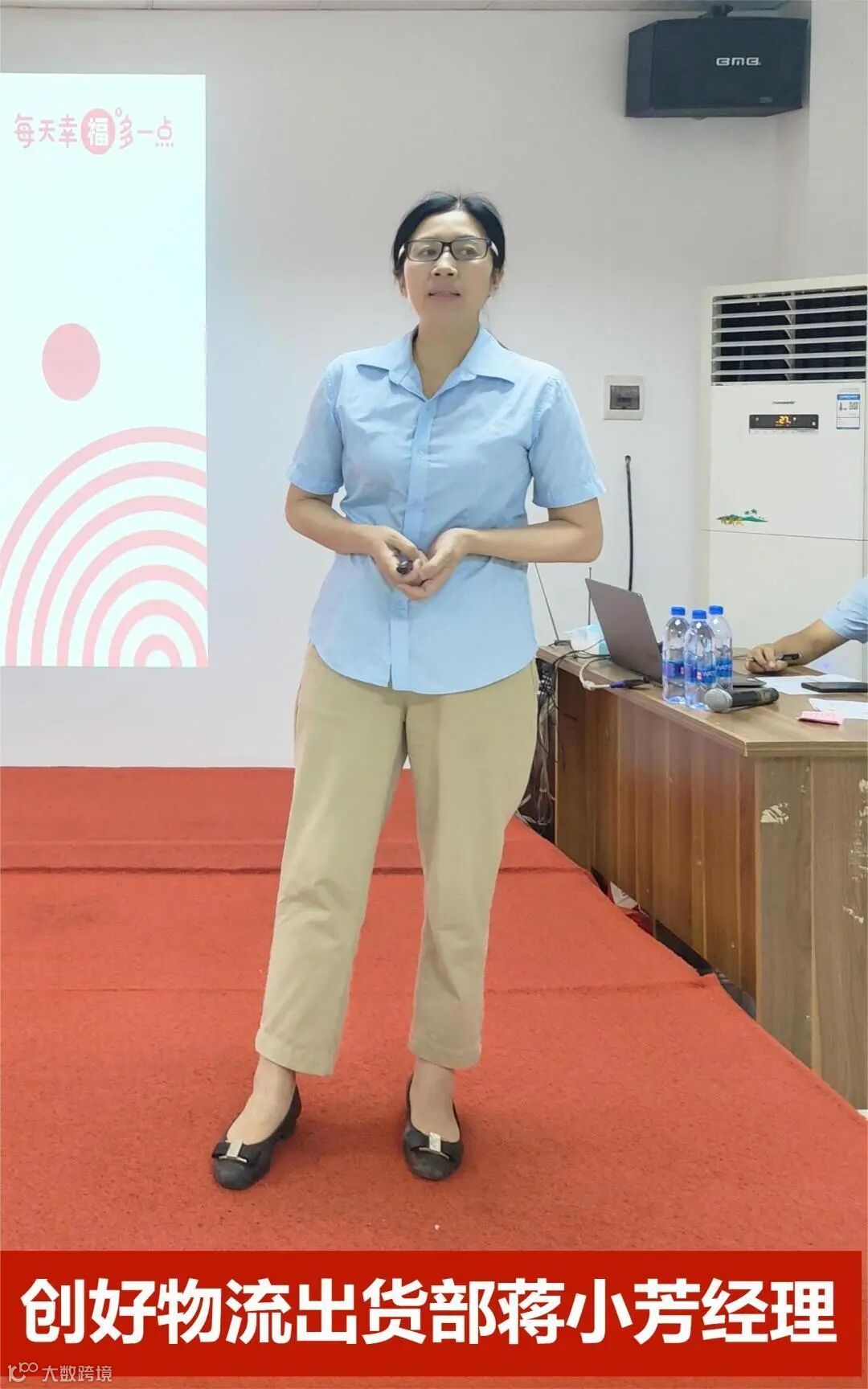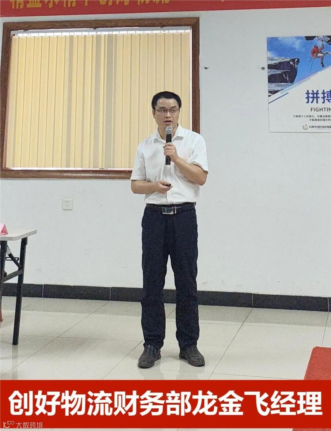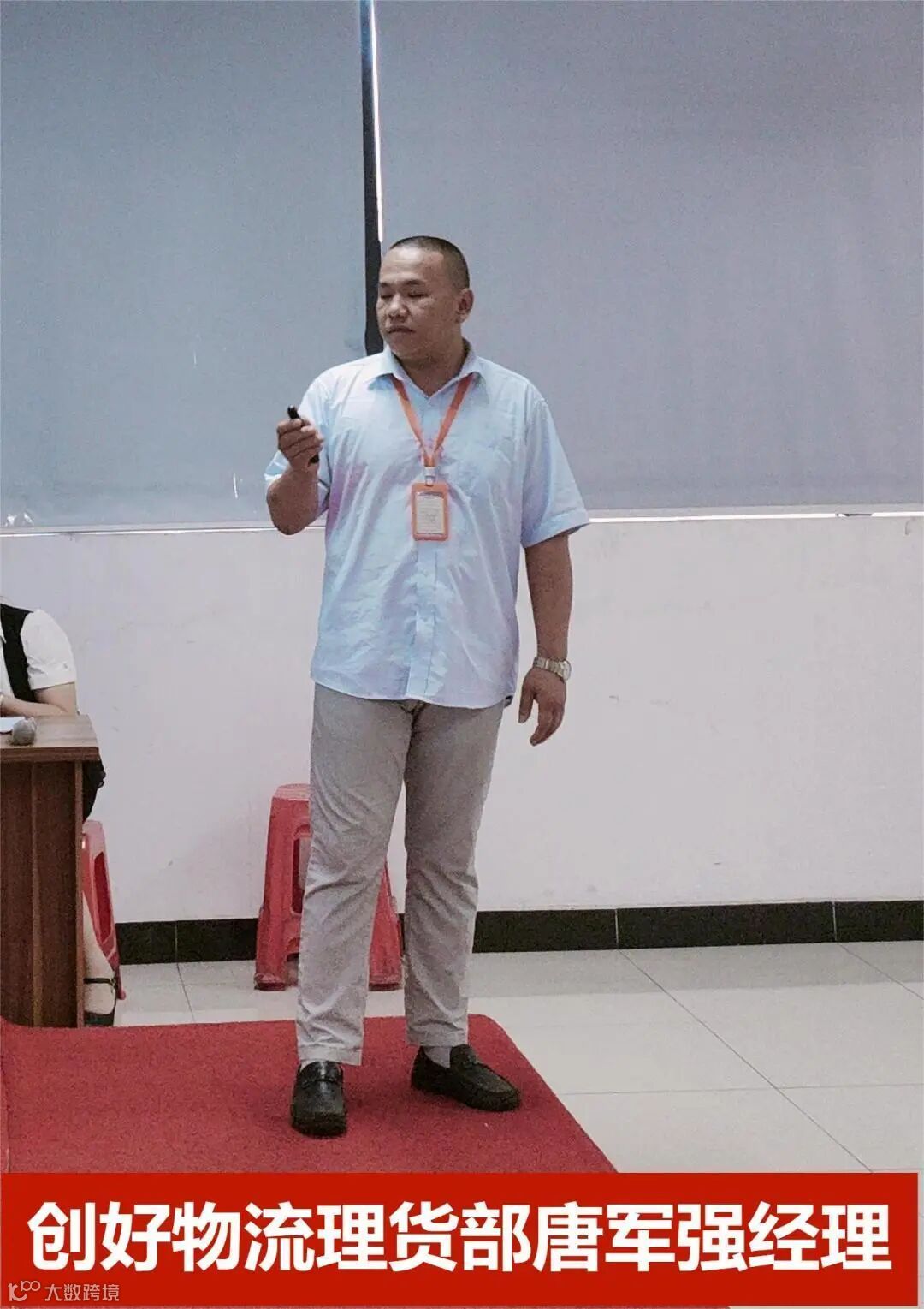 会议持续进行中,接下来由创好物流总经理梁文扬先生上台分享创好物流三塘仓的整体相关工作,同时也教导我们:做事要无私心,要有决心,更要有耐心。