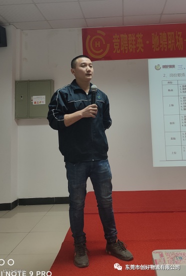 俗话说“台上一分钟,台下十年功”,我相信在场的竞聘者都是最棒的,但难免也会紧张。为了让他们士气大增,蜕变成台上最靓的“仔”,我们创好物流总经理梁文扬上台为他们鼓气 !!加油 !!并叮嘱他们在台上尽情的发挥。