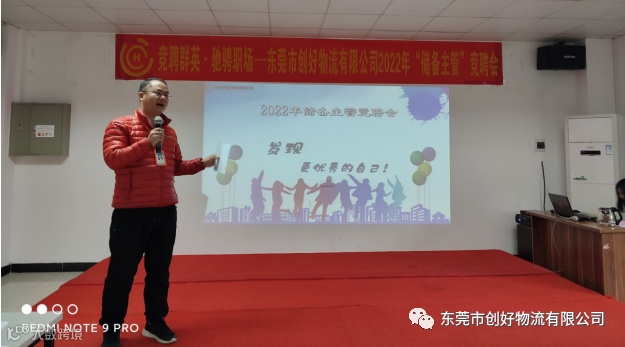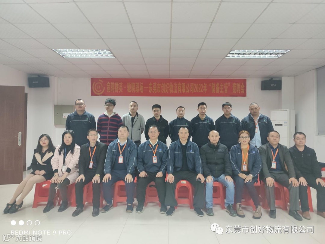 东莞市创好物流有限公司为了合理的挖掘、开发、培养、巩固公司战略后备人才队伍,通过制定有效的人才培养与开发计划,建立优秀的人才培养机制,建立平等竞争,优胜劣汰的激励机制,形成人才梯队,经总经理室研究决定,2022年1月13日在创好物流公司二楼会议室开展公平、公正、公开的“储备主管竞聘”选拔活动。出席本次评委的分别有广东天福连锁集团副总裁兼物流中心总经理陈远强,创好物流总经理梁文扬,副总经理张永军,副总经理莫士卫,人事部经理莫解弟,财务部经理龙金飞,理货部经理唐军强,出货部经理蒋小芳,发货部副经理雷袁虎,运输部副经理傅永红等10名评委。