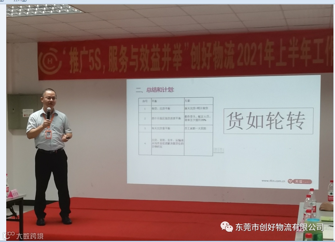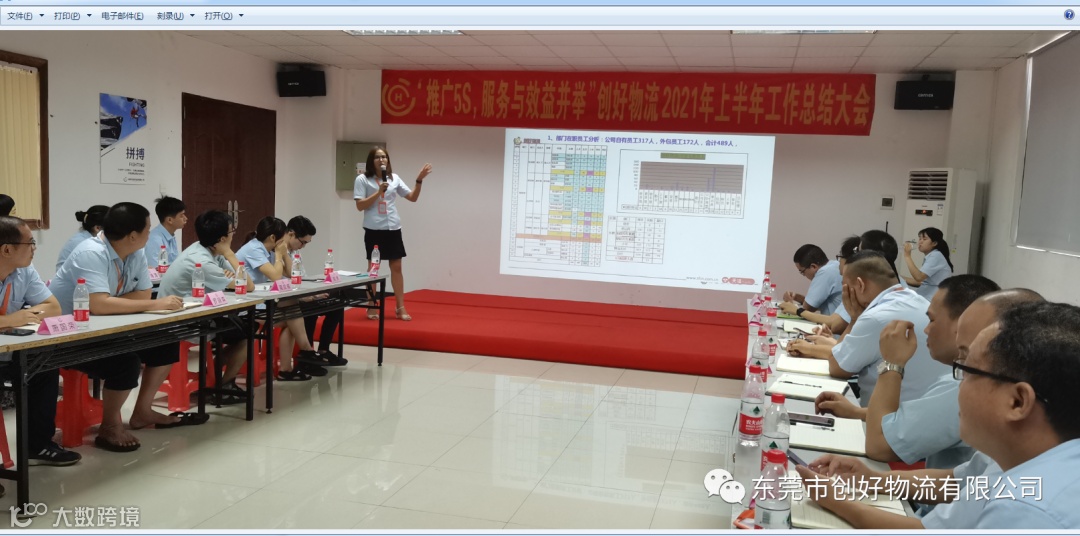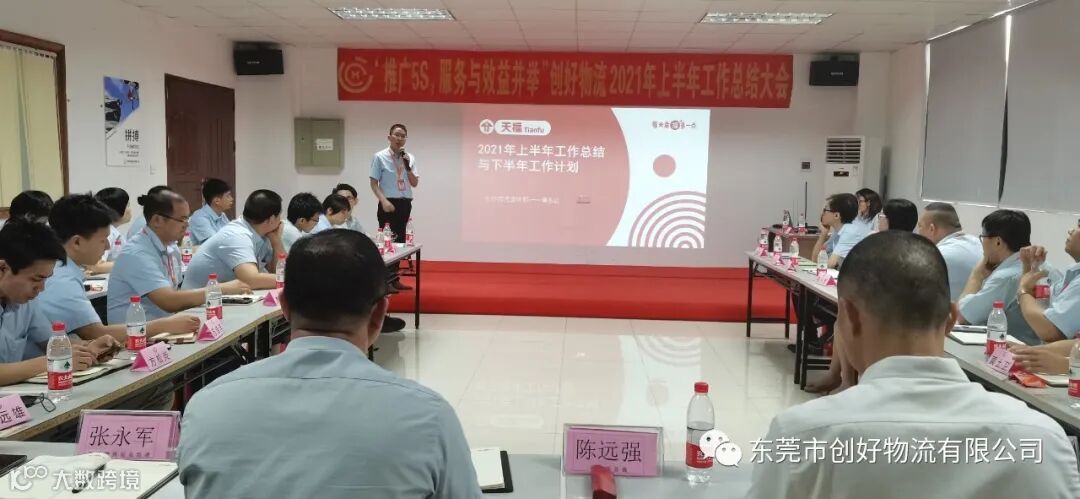 2021年7月13日创好物流公司围绕着“推广5S,服务与效益并举”在集团公司的领导下举办上半年工作总结大会,会上,各部门经理级以上管理人员对依次向大家分享了2021年上半年工作总结与2021年下半年工作计划,气氛热烈。