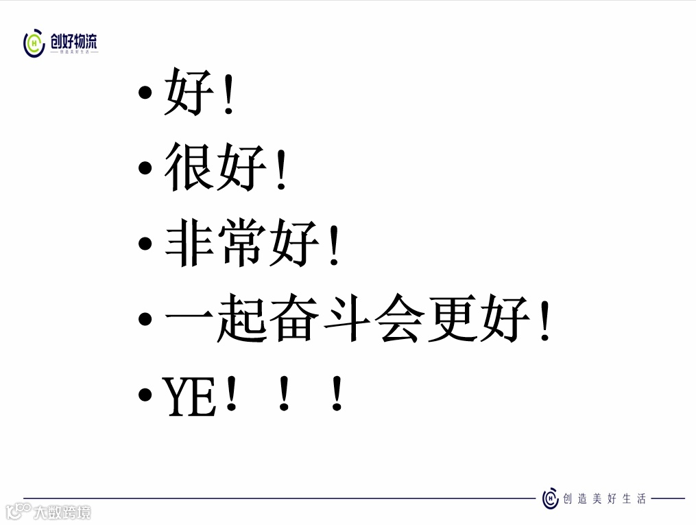 每当加入一个新企业,如同进入一个大家庭,作为一名“家人”便要“入乡随俗”认同公司的企业文化,激情洋溢的喊出创好物流的口号: