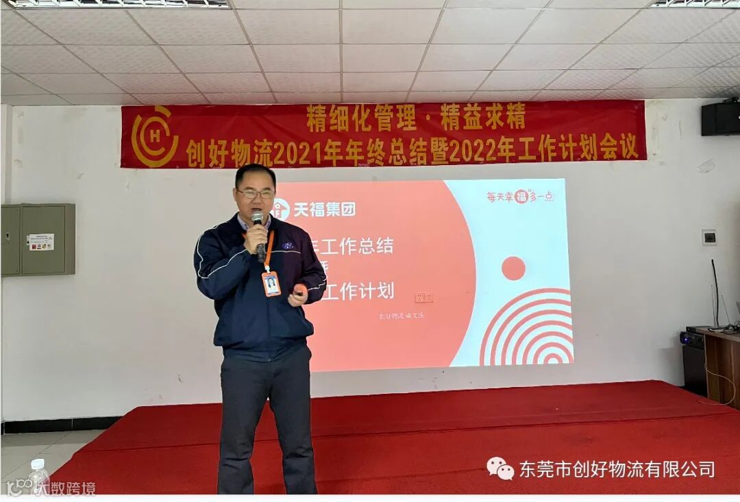 为凝聚共识,坚定信心,1月18日,东莞市创好物流有限公司召开以“精细化管理·精益求精”为主题的2021年年终总结暨2022年工作计划会议,认真总结了2021年取得的各项成绩,并安排部署了2022年度工作计划。受广东天福连锁商业集团董事长兼总裁欧阳华金先生委托,集团常务副总裁成世恩先生出席会议并作重要讲话。集团相关职能中心负责人、创好物流全体管理人员参与了本次会议。