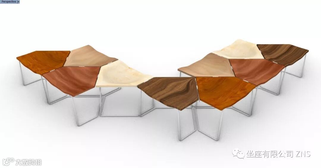 「海漩」凳子的后半部分采用棱柱设计,透过T型锁固机制,能以指南针的四个方向相互无缝并合。在炭灰色的不锈钢底座支架上,经过处理的波浪形码头木材与人体臀部紧密贴合,提供最佳支撑和舒适度,实为观赏艺术和改动博物馆与艺廊场地布置的理想座椅。