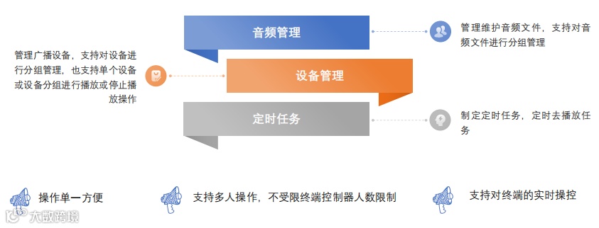 IP广播系统:实现对广播设备的远程控制,便捷播放音频语音等文件,支持语音宣传或通知或者预警等功能。