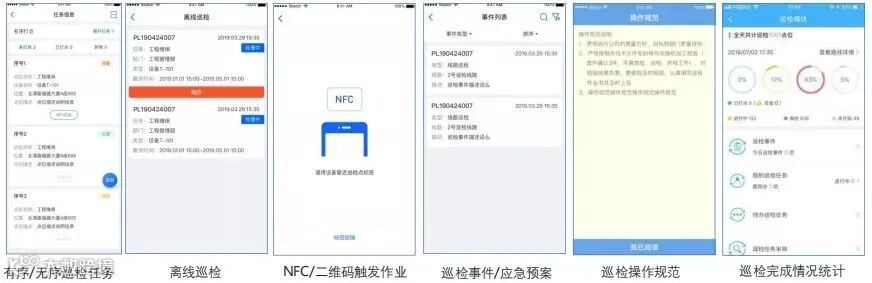 做到实时巡检统计,统一操作标准,可强制要求员工在进行维保前阅读;提前设置应急预案,规范员工巡检作业内容,巡检过程中发现的异常参数及时上报管理人员;离线巡检:支持无网络情况下的离线巡检;确保员工到场:二维码、NFC扫描确保员工到场的真实性(点位可复用)。