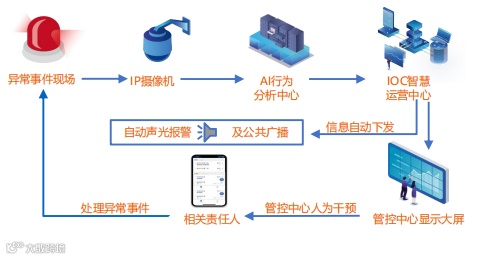 系统可自动联动相关硬件设备、 下发信息至相关人员,及时处理异常事件。实时监控园区的安全状况。通过智能分析和预警,可以及时发现和处理各种安全事件,保障园区内的人员和财产安全。