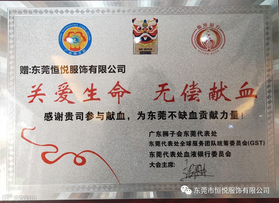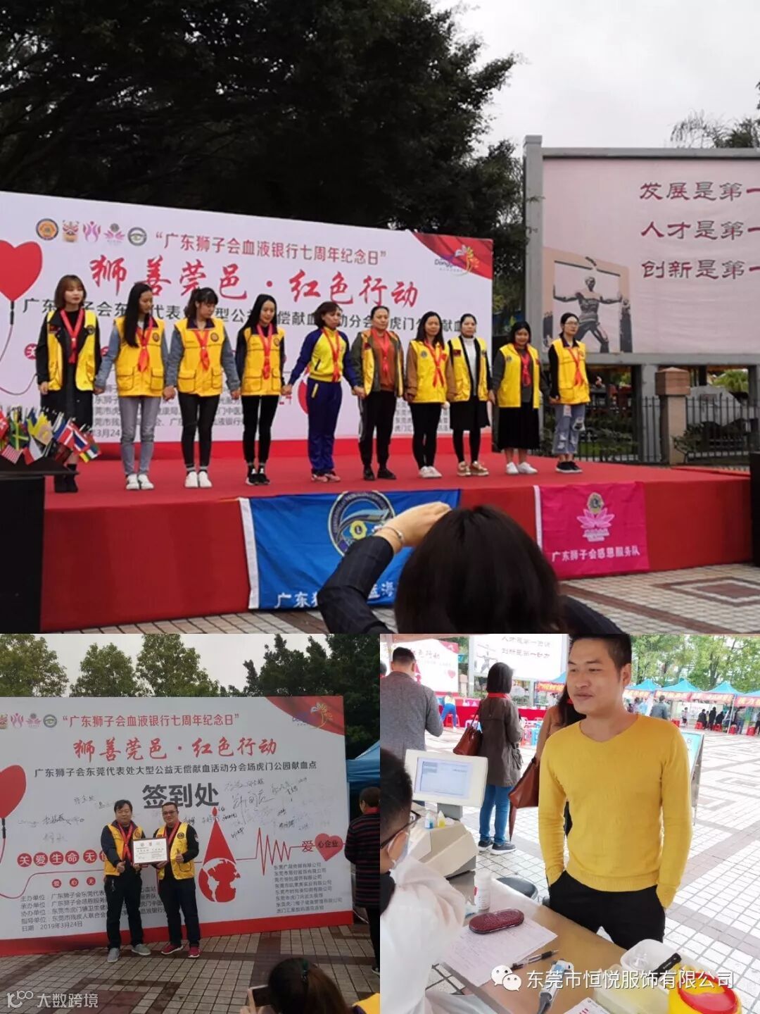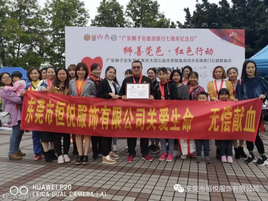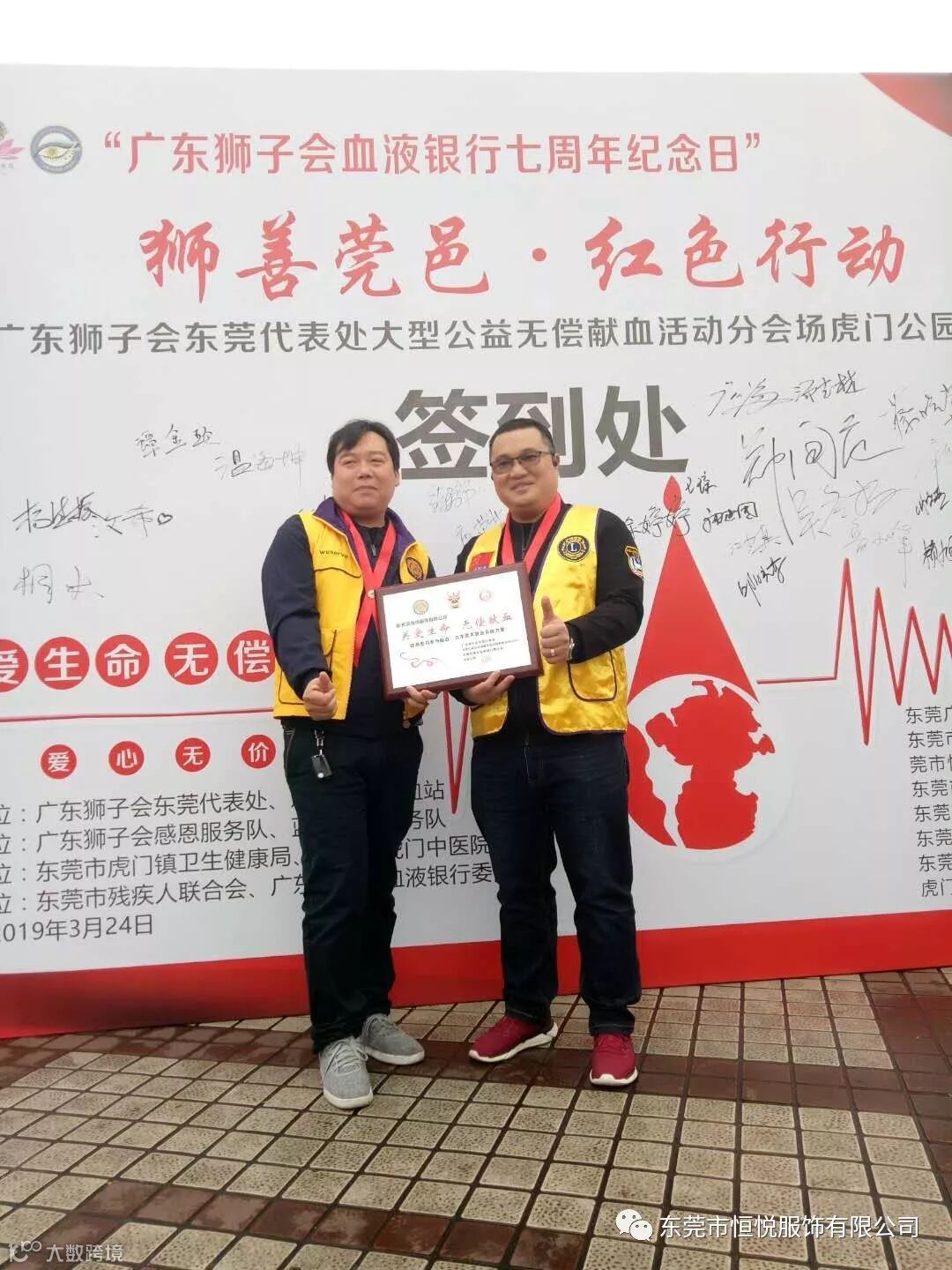 2019年3月24日,广东狮子会东莞代表处,举办了广东狮子会血液银行七周年庆典&广东狮子会东莞代表处“狮善莞邑·红色行动”大型公益献血活动。恒悦服饰组织家人参与活动