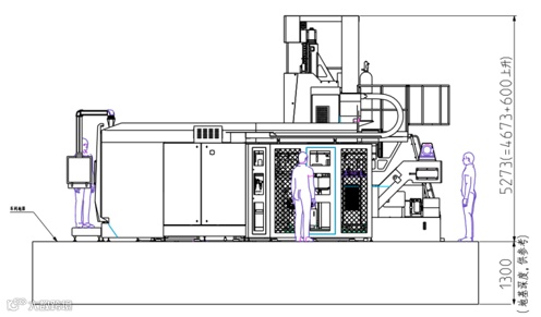 机床采用固定拼接式 U 型床身底座总成,横梁顶置移动的高架天车动梁式布局结构;