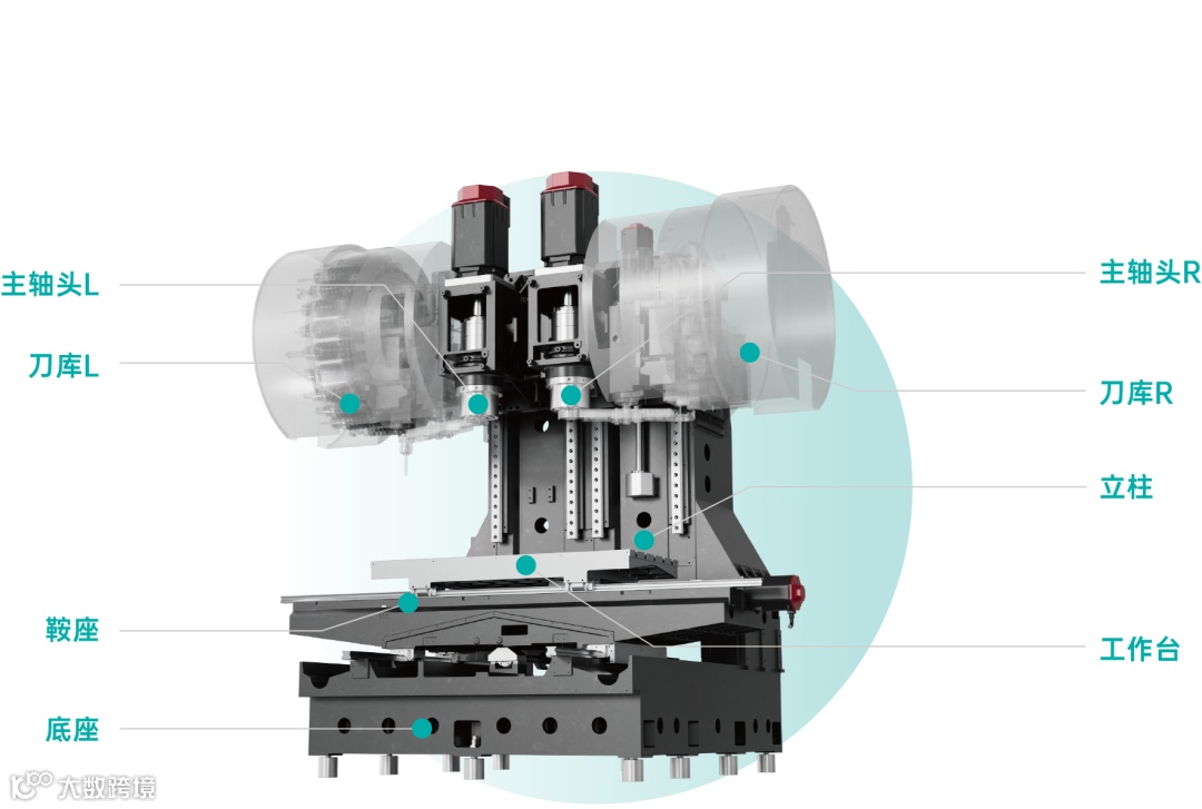 双主轴Z/W为独立的伺服马达驱动,独立结构,独立刀具装卸