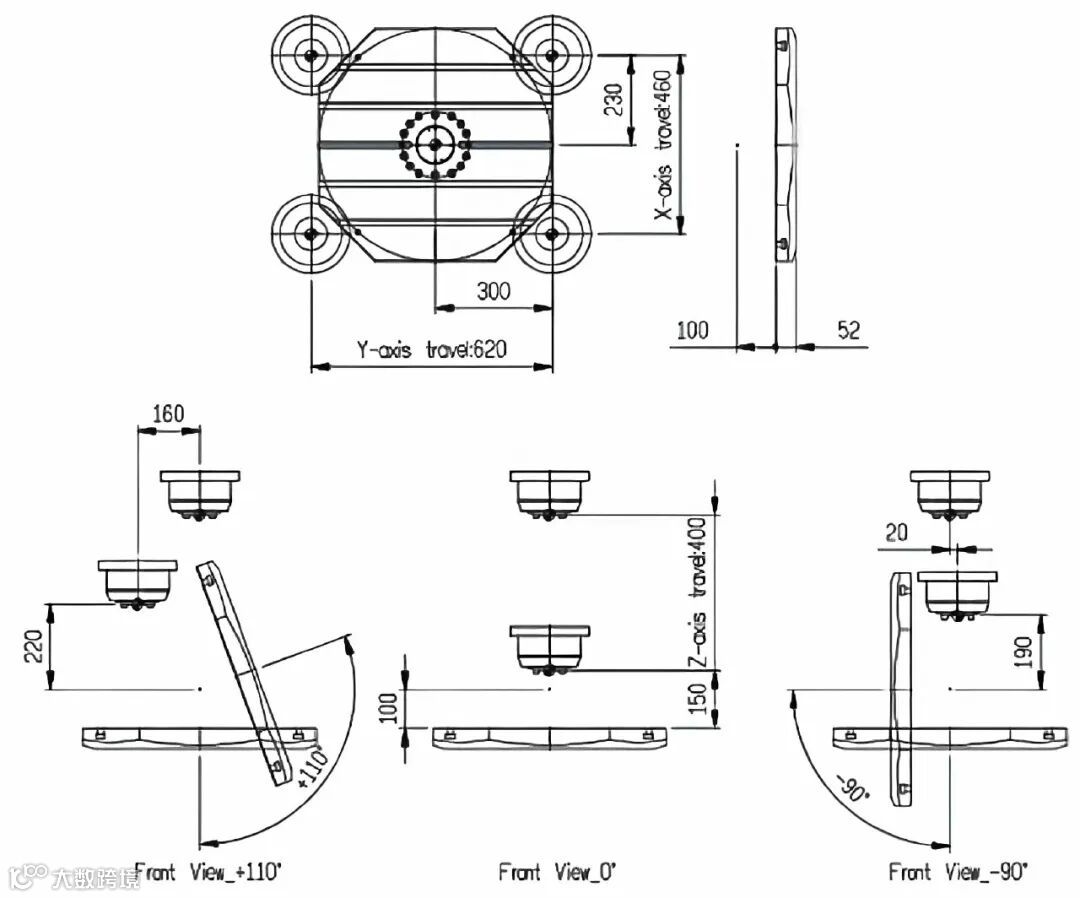 在采用创新的开放式加工操控区同时,研发设计AC-type五轴工具机,不同于同行业的BC-type,本机的最大加工物径大于加工形成,能更清楚观察五轴铣削工件,充分实现更高的生产效率和加工品质。