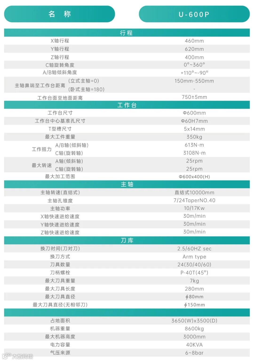 U-600P是FFG专为高速、高精度加工及精细加工而开发的五轴立式加工中心。