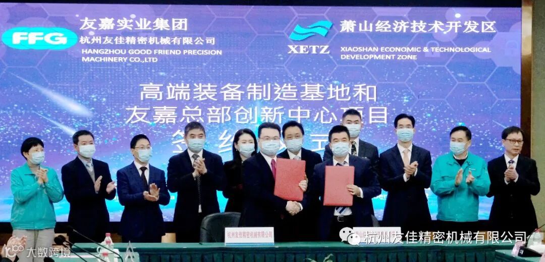 签约仪式上,友嘉集团总裁朱志洋通过视频连线致辞,对政府领导的大力支持表示感谢,并表示新国际形势下行业龙头引领创新,杭州友佳精密机械有限公司高端装备制造基地和友嘉总部创新中心项目是顺天时、享地利、占人和,是友佳立足资源禀赋、发挥比较优势、深入贯彻落实萧山区文件精神、推进产业提质升级谋划的重大项目,新增总投资高达20亿元,总计注册资本将不低于1亿美元,用于增资扩产与转型升级,为广大客户提升自动化、智能化的“一站式”精密工业高端制造解决方案。
