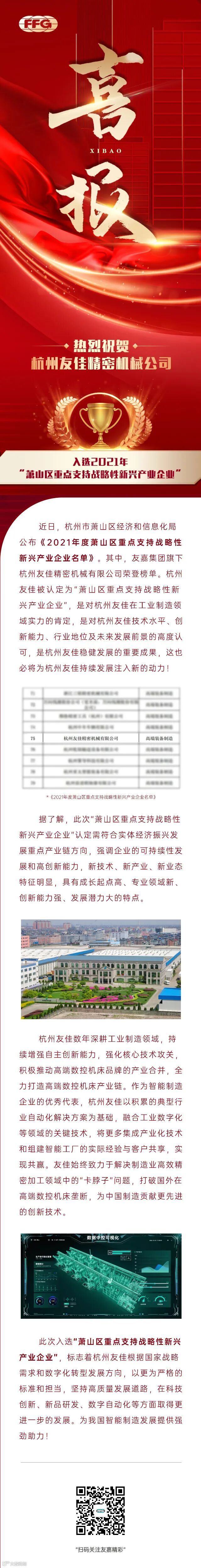 【公司动态】喜报丨杭州友佳荣获“2021年萧山区重点支持战略性新兴产业企业”认定 友嘉国际数控机床有限公司