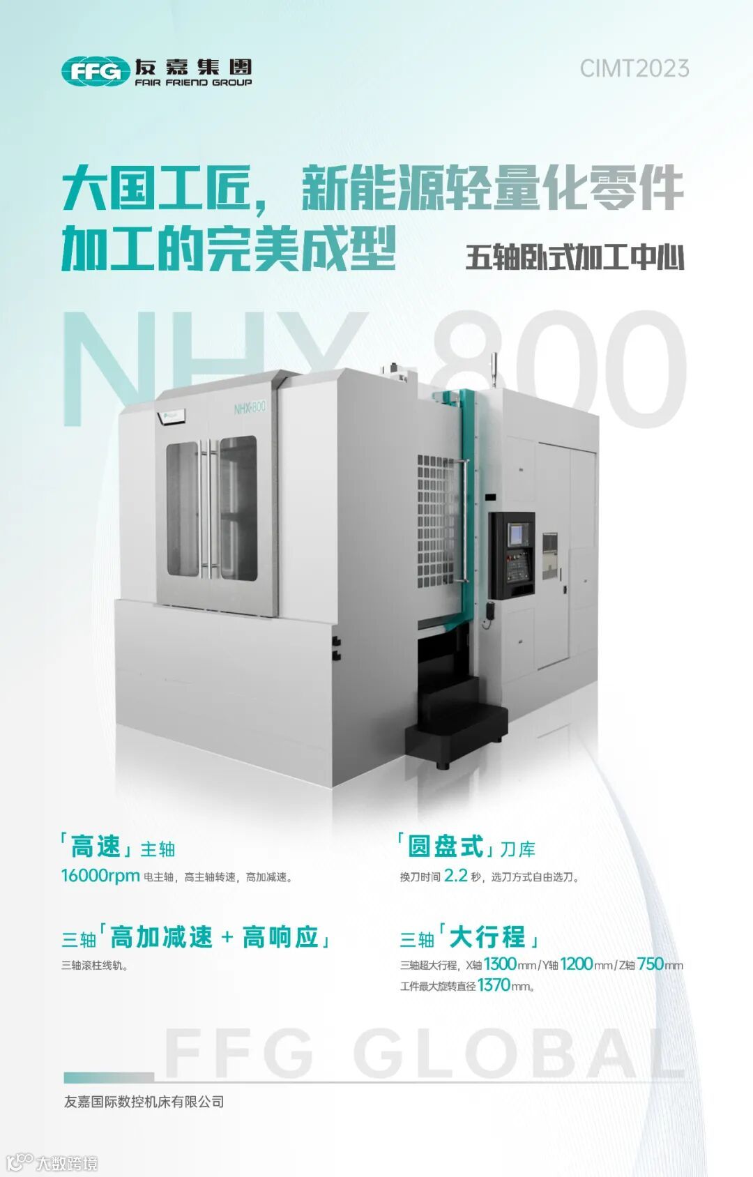 友嘉集团立式加工中心机FDV-650A、卧式加工中心NHX-800将在CIMT2023精彩亮相。立式加工中心机FDV-650A双主轴加双ATC实现高生产率,相较于单主轴机床生产力提升两倍,成本降低25%,占地面积减少40%,缩短人力费用和营运成本。