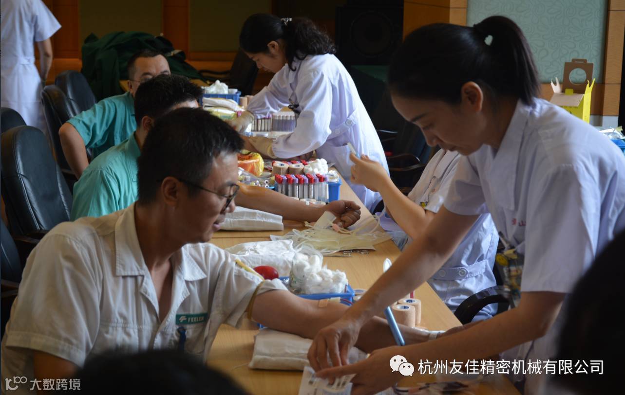 友嘉国际数控机床有限公司前日,我公司在开发区管委会掀起了一场以“拳拳博爱友佳心,涓涓无私热血情”的义务献血热潮,在公司号召下本次爱心活动共68位同仁报名参加,最终有44位同仁成功捐献17600毫升血液!他们用爱心彰显助人之美,用奉献弘扬友佳精神!他们是友佳最可爱的人。