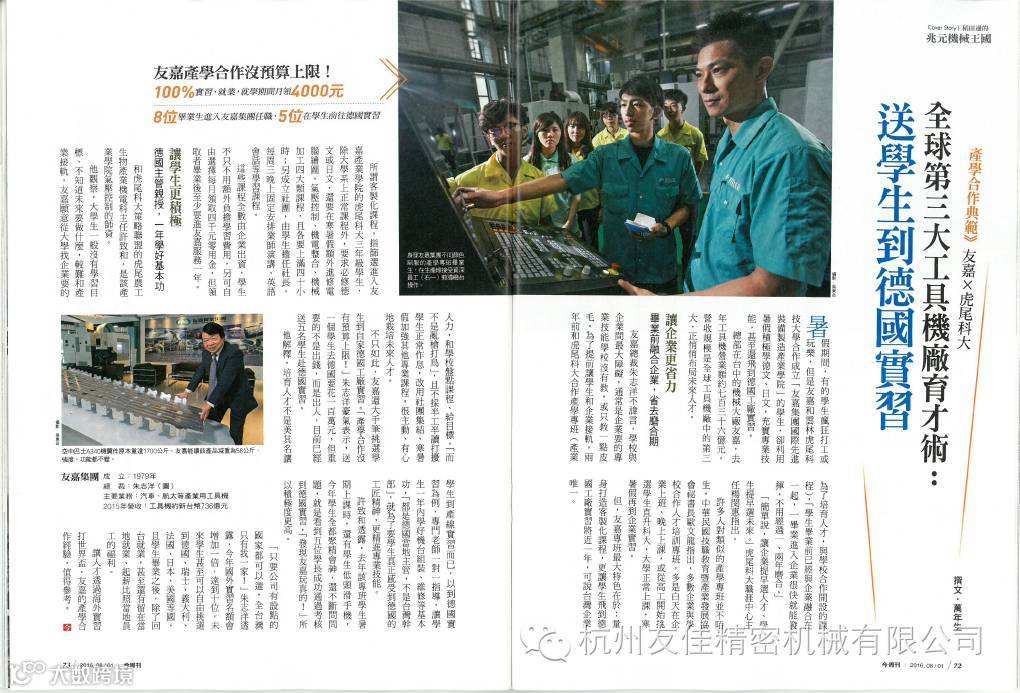 友嘉国际数控机床有限公司朱总裁表示,学校与企业间最大障碍,通常是企业的专业技能学校没有教,或只教一点皮毛。为了提前让学生和企业接轨,两年前友佳集团和虎尾科大合作产学专科(产业为了培养人才,与学校合作开设的课程),学生毕业前已经与企业融合在一起,一毕业进入企业很快就能发挥,不用经过一两年的磨合。简单的说,是让企业提早选人才,学生提早选未来。