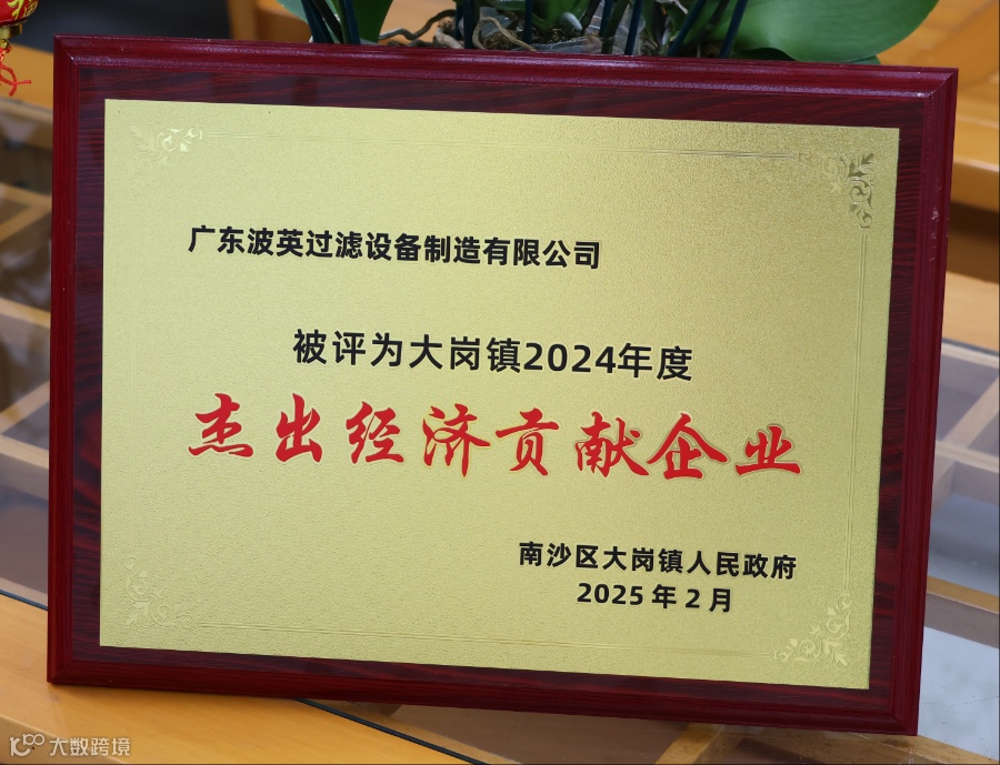 2024年广东波英过滤设备制造有限公司凭借在大岗镇的经济发展、慈善公益以及区域协同中的卓越贡献,荣幸地获得了“杰出经济贡献企业奖”!