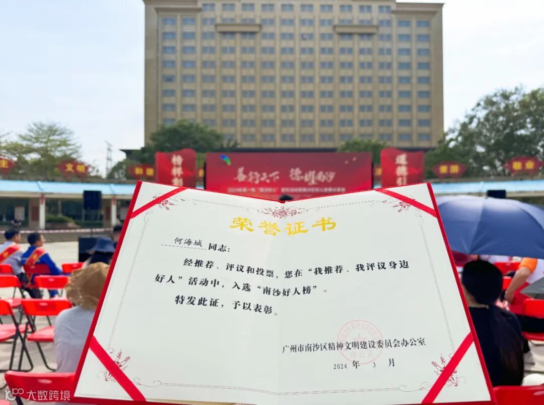 3月27日,“善行天下 德耀南沙”2024年第一季度“南沙好人”发布活动暨南沙区好人故事分享会在珠江街道珠江文化广场举办。本场好人故事分享会邀请了来自南沙区各行各业、各条战线的“好人”代表登台讲述感人故事,树立“以善为本”的榜样力量,凝聚奋进精神,并在活动中发布了2024年第一季度“南沙好人”名单。