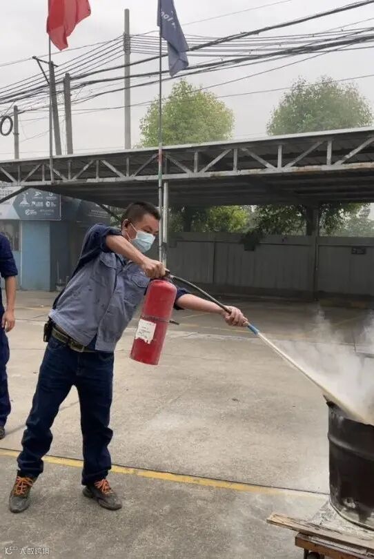 培训人员向公司员工讲解了灭火器的使用方法和灭火注意事项后利用油盆等物品模拟简易的起火点来进行灭火演练,公司员工踊跃参与体验灭火器灭火