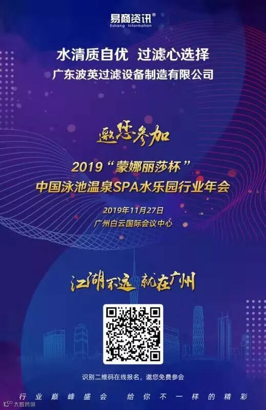 2019中国泳池温泉SPA 水乐园行业年会将于11月26日,在广州白云国际会议中心,即广州市白云大道南1039-1045号,届时广东波英也会参加。