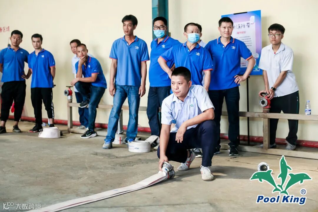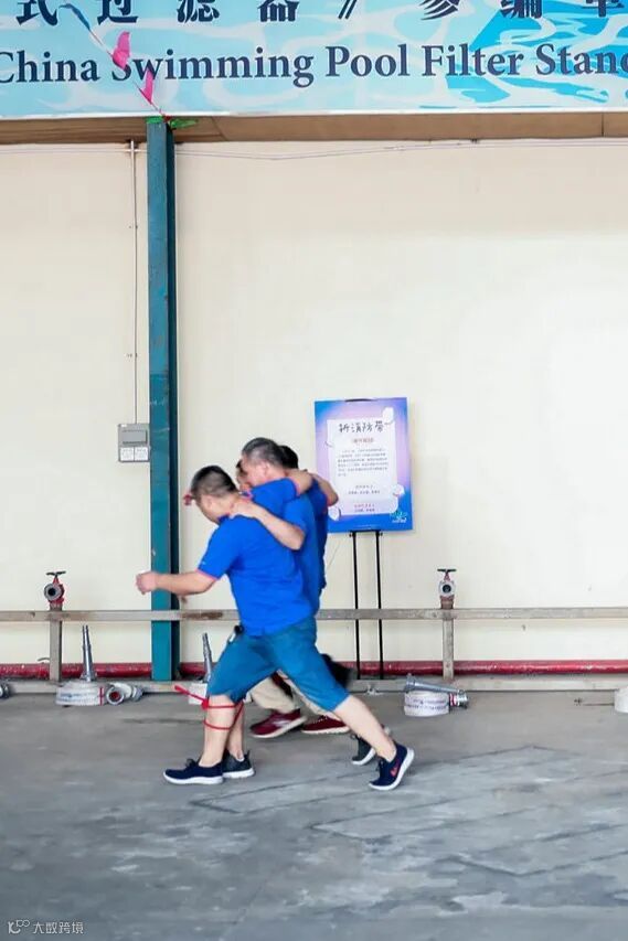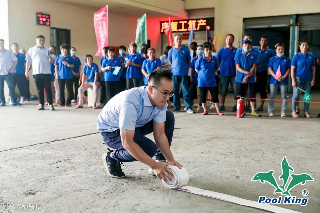 2人为一组,每个部门派2个人出来参加,一共分为多组同时进行,1人抛消防带另外1人把抛出的消防带重新折叠规范放回原位置,最快的3组按时间来定出来一二三等奖,奖金分别有300元200元100元,其他慢的组合可以得到参与奖品一份。