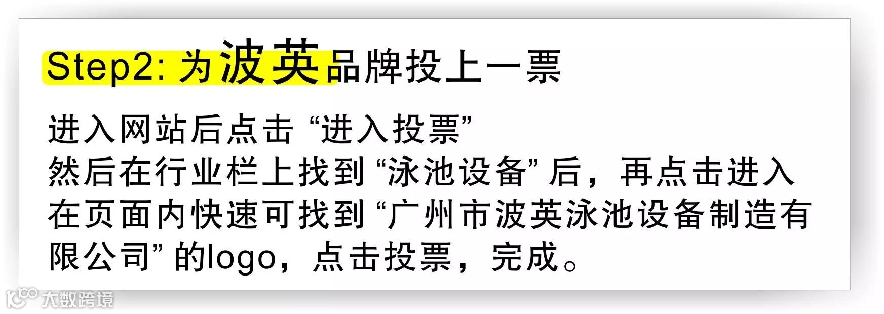 [广州市波英泳池设备制造有限公司] 正在中国十大品牌网中进行投票评选,投票情况非常激烈,还在等什么?快快加入投票行列,为波英公司加油吧!