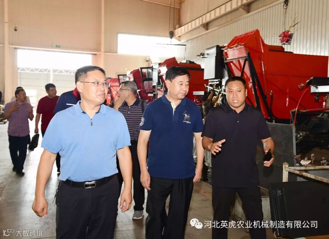 2019年9月3日, 河北省农业厅总农艺师郑宏维、河北省农业机械化管理局局长戎美瑞、农业机械鉴定总站站长孙世桢一行莅临英虎公司进行调研交流。重点对英虎公司的玉米收获机生产情况进行了调研。