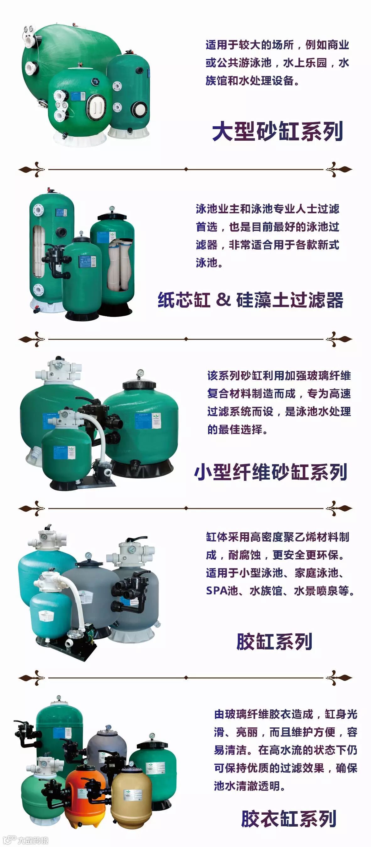 5大系列砂缸过滤器,砂缸高度均可按客人的需要而定制。