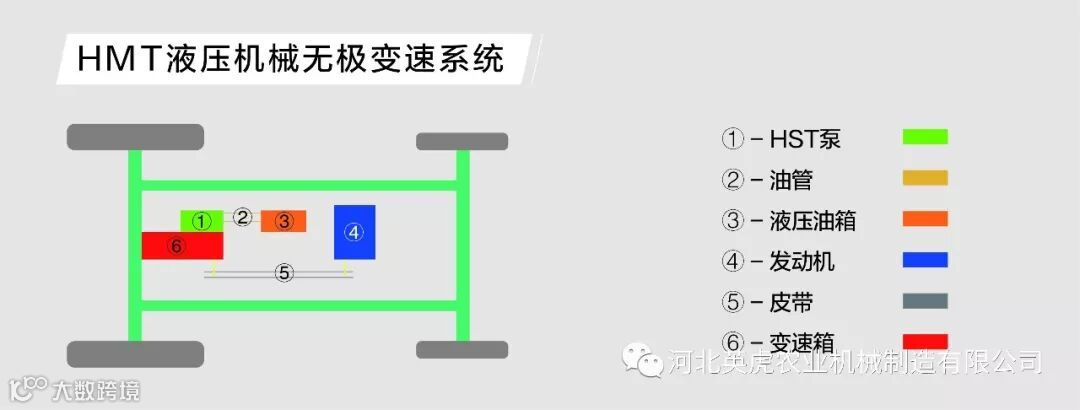 ◆ 2.英虎机械自主研发的HMT适配变速箱,挡位速比配置更合理,收割行走配合更加安全和多样化。