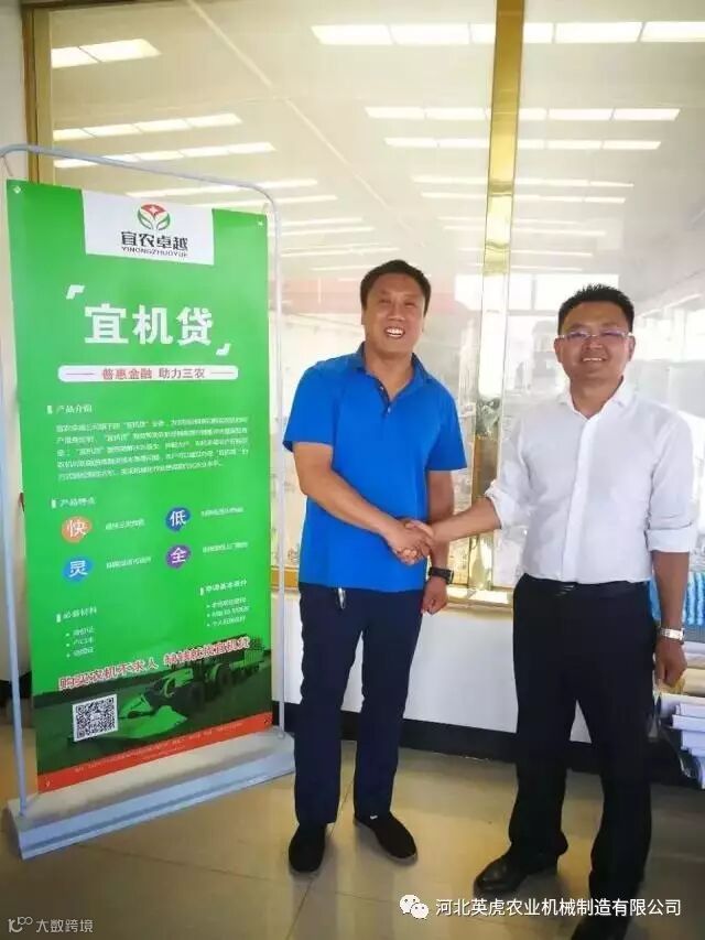宜农卓越旗下的“宜机贷”业务,为农机经销商和购买农机的农户量身定制,“宜机贷”有效帮助农机经销商提升销量并快速回笼资金,且不需要经销商担保,同时“宜机贷”能有效解决农场主、种粮大户、农机手等农户在购买农机时的借款难的问题,可以通过办理“宜机贷”的方式轻松购买英虎机械产品,早日用上英虎玉米收获机致富。