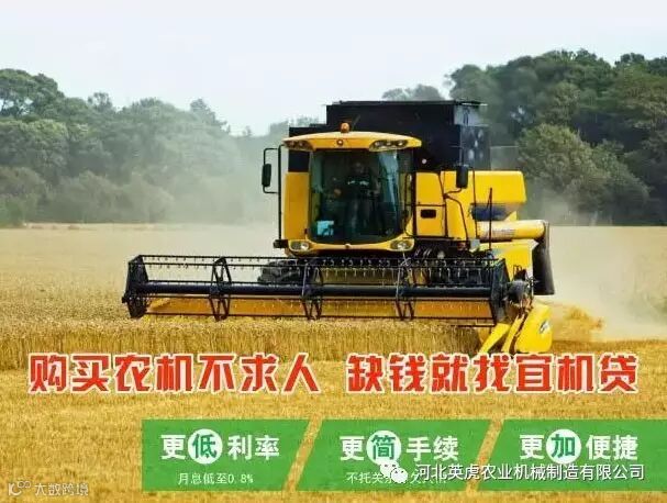 也许您正在考虑,下一个收获季节的来临,备战玉米收;准备也买一台玉米收,想好好通过这个秋季,大干一场,让自己的家庭更加的富足,苦于农机更新换代,需要资金,但是眼下又不好一下凑齐,想去银行贷款,苦于没有门路;找亲朋好友借钱,又张不开口;还是等钱攒够了,再下手?但是又怕错过这个秋收季节,如果有了玉米收,也许这个秋收季就能多挣个5-6万;咋办才好呢?您别急,英虎机械销售部经理李侠深入一线,了解英虎机械经销商也会因这样问题,流失了很多钟情英虎玉米收的客户,转而投奔其他低价位质量不过关的玉米收,经多方了解,目前专注服务于三农的金融机构不多,农信社与邮政储蓄这类银行机构,因手续繁琐,要经销商或公务员担保的方式,才能申请到贷款,这对于广大用户来说,非常难办到;其他非银行机构也都无一例外的要求农机经销商为农机手担保,才能有机会拿到资金;但对于经销商朋友而言,本身农机销售环节利润就不高,再有担保行为,对于经营上的风险增大,经销商都非常的顾忌。