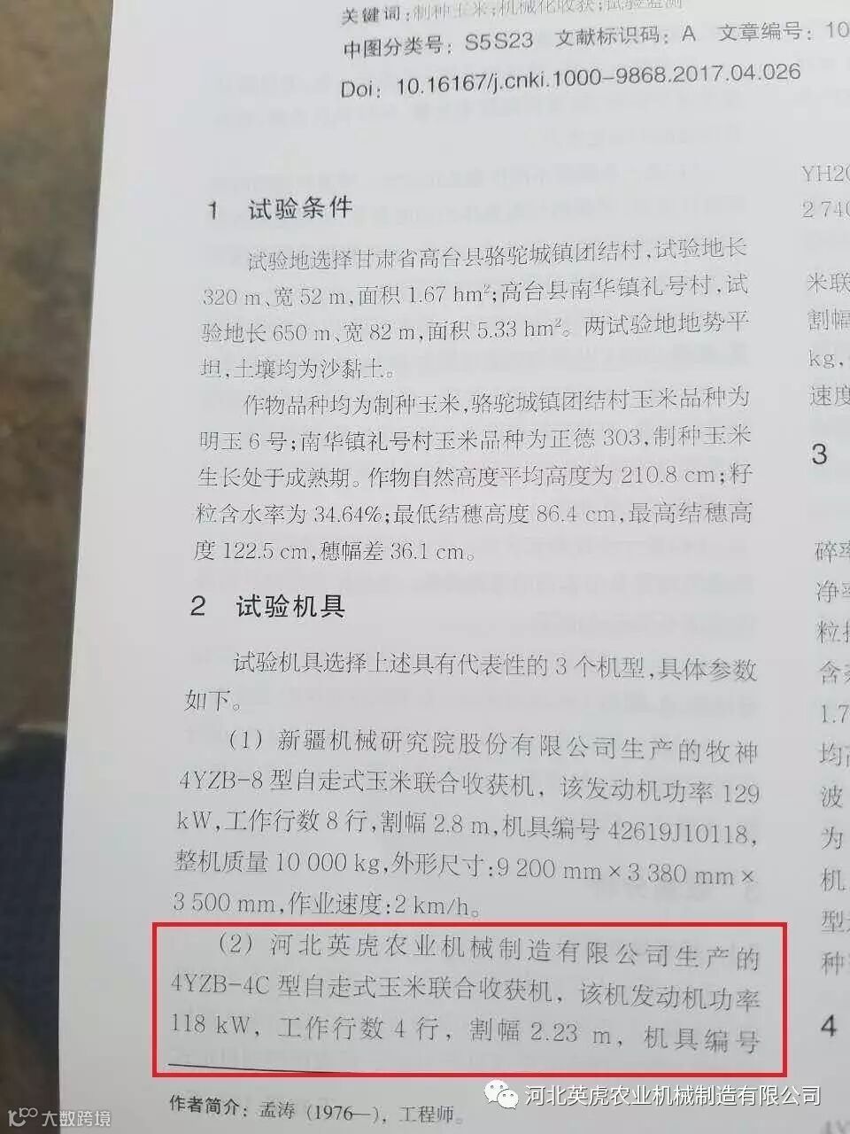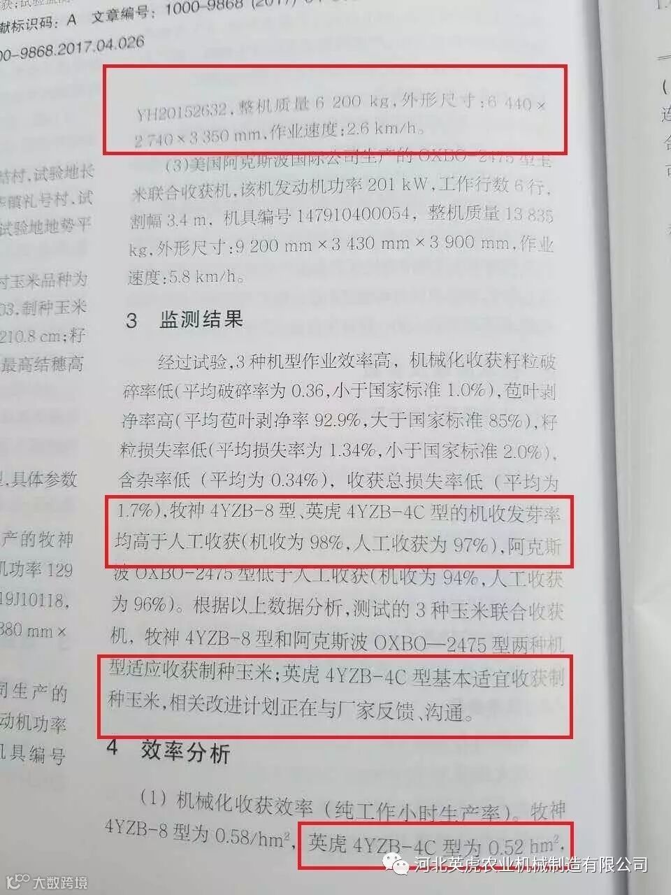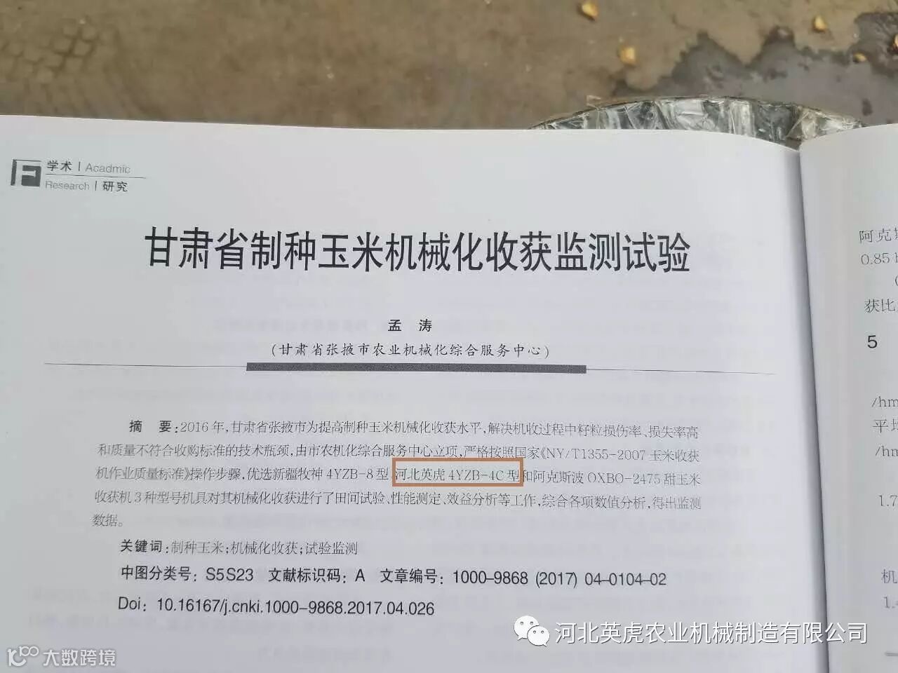 英虎机械基本通过甘肃省制种玉米收获实验检测