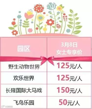 长隆的园区在3月8日那天,女士将会享有优惠价,五折购门票!