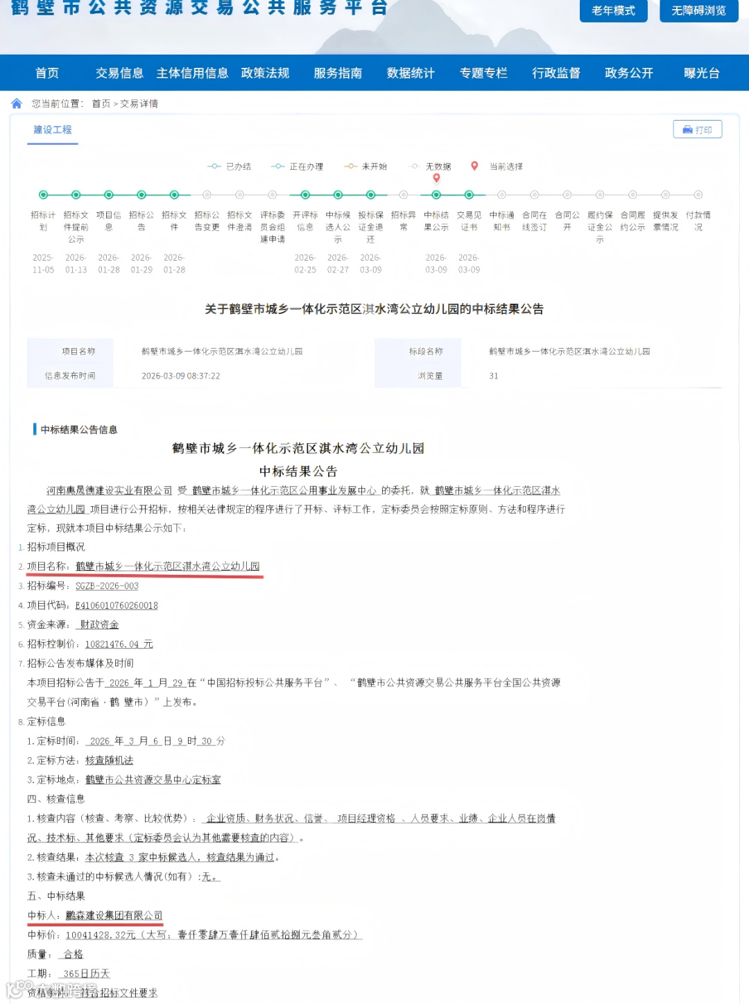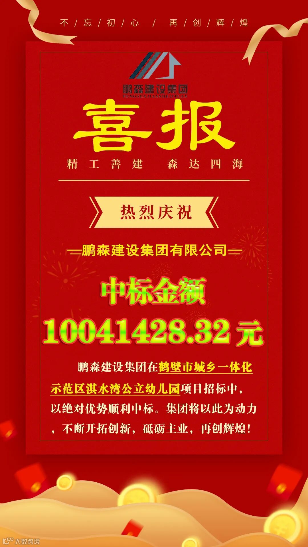 3月8日,鹏森建设集团传来喜讯,凭借卓越的技术实力、丰富的工程经验和完善的项目规划,成功中标“鹤壁市城乡一体化示范区淇水湾公立幼儿园”项目,中标价10041428.32元。